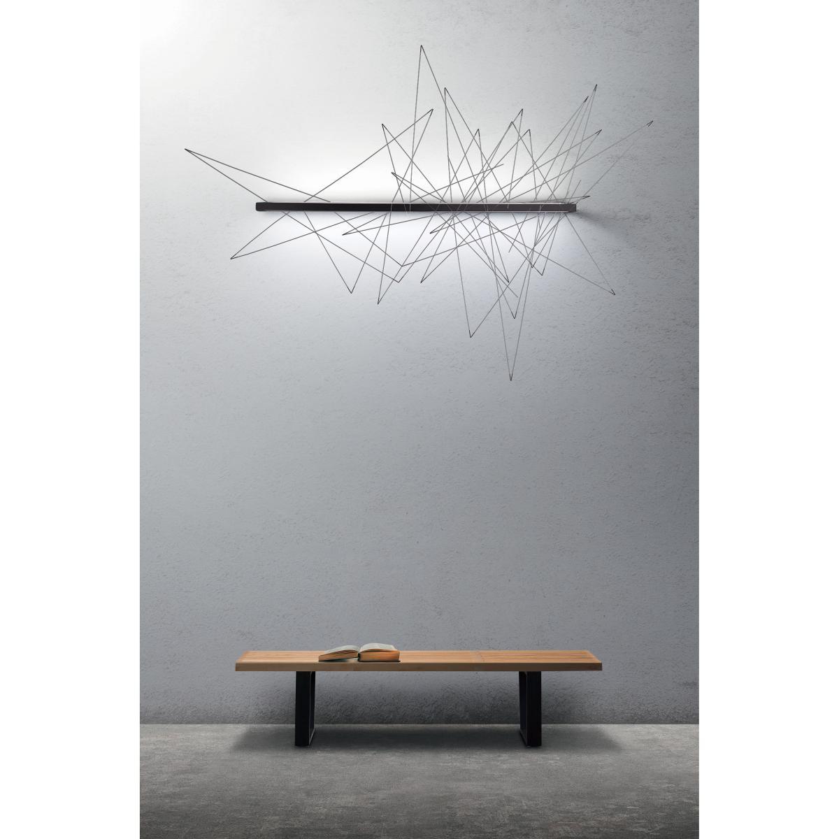 Japanese designer Kazuhiro Yamanaka has designed a sculpture lamp with incredible visual impact. Graffiti is a modular wall lamp that changes its appearance at will. It consists of a multitude of steel rods which magnetise as they choose to the rectangular wall structure. You can place the rods as you wish and move them according to your inspiration at any given time. The user becomes co-creator of the design. The user can have fun drawing "graffiti" in the air with the metal rods. The light sets off the aesthetics of the lines created by the rods while illuminating the surrounding space. The thin steel rods draw clear geometric lines. They appear like pencil lines drawn in space. The fine, linear silhouette is like a three-dimensional sign suspended in the air. With this light, Kazuhiro Yamanaka magically explores presence and absence, light and fluidity, transparency and emptiness. The two powerful LED strips are located in the wall structure: one placed above the structure, the other below. The Graffiti wall lamp emits both direct and indirect lighting (directed downwards and towards the ceiling). Graffiti is a sculpture of light that’s lightweight but which truly inhabits the space it occupies. Designer Kazuhiro Yamanaka explains "Designers should contemplate the emptiness that surrounds objects, the space between objects, and the relationship between these objects. I think that furniture - chairs, tables, lamps, etc - could be like a constellation of stars, and we could create lines to connect them in three dimensions and so create a specific story. As a designer, I believe it’s my job to create stories. To achieve a concept effectively, I try to create maximum impact with minimal use of materials. ‘’.