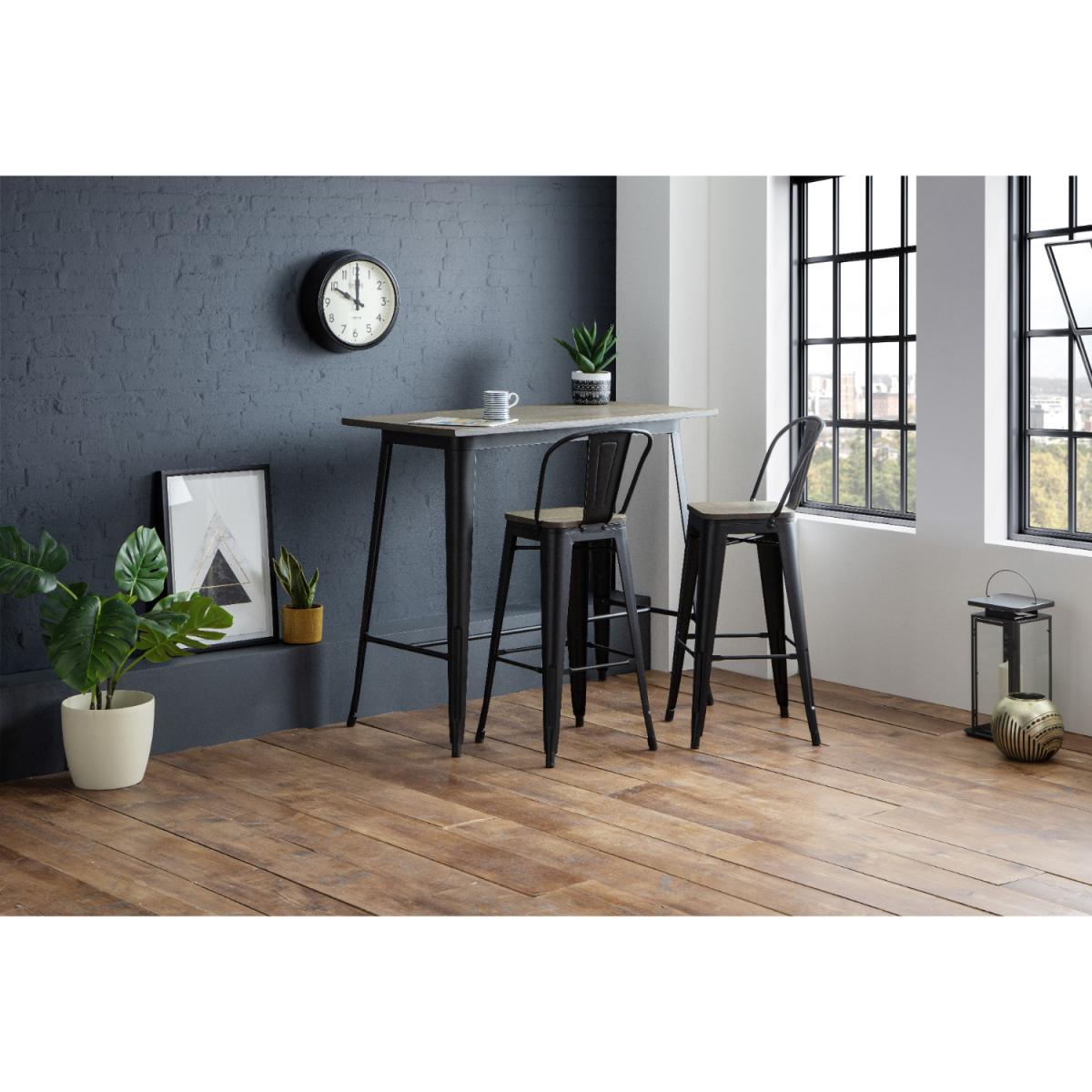 Crafted from solid Elm wood and satin black powder coated steel, The Grafton Bar Table offers a suitable dining or drinking area for up to 4 people. Pair up with the Grafton Bar Stools to add a modern, industrial feel to any room.