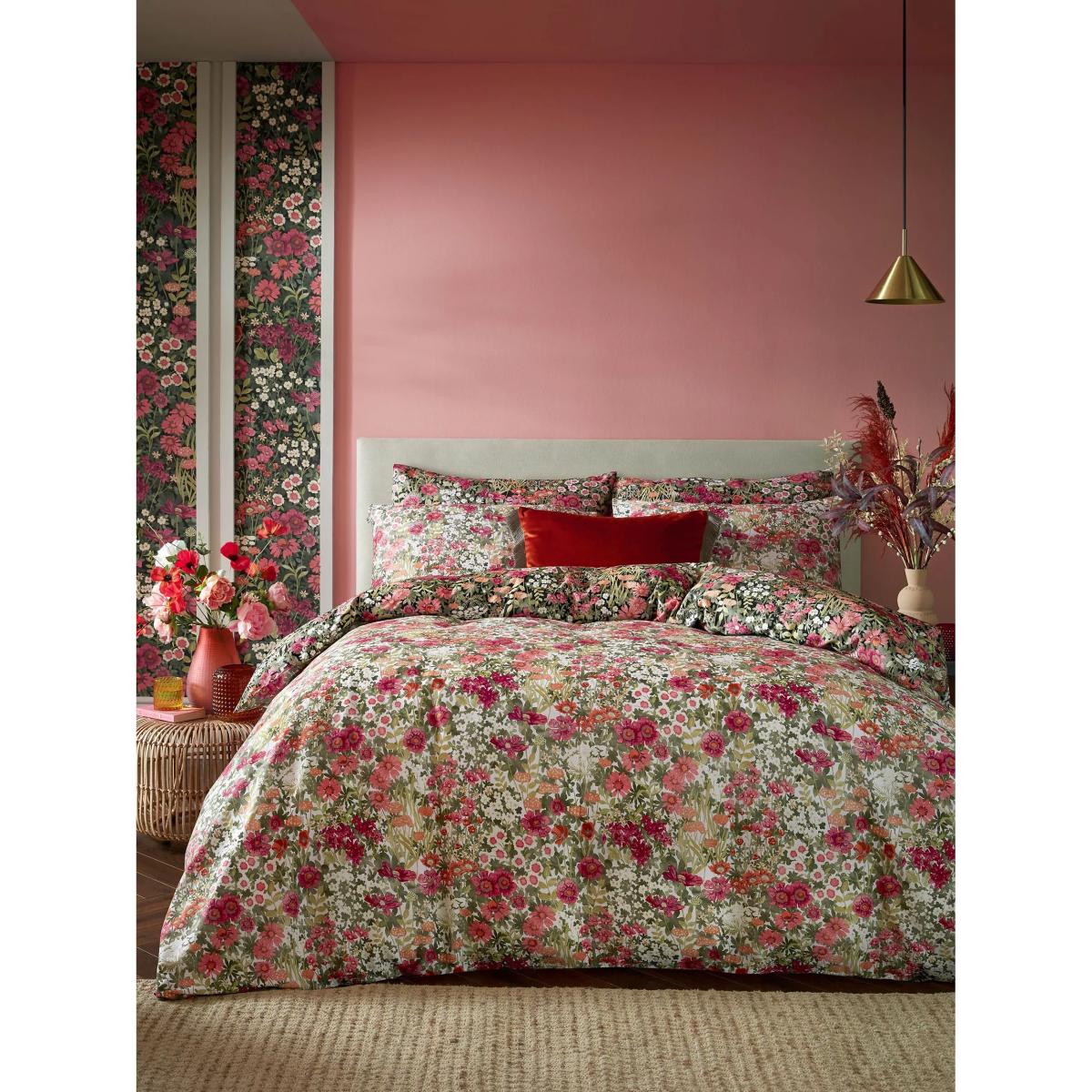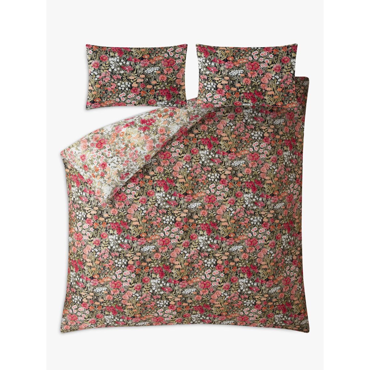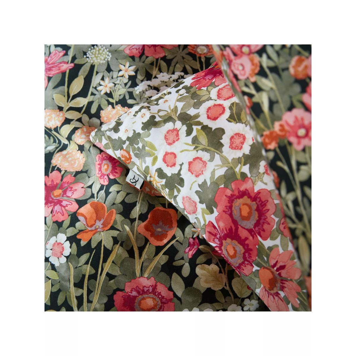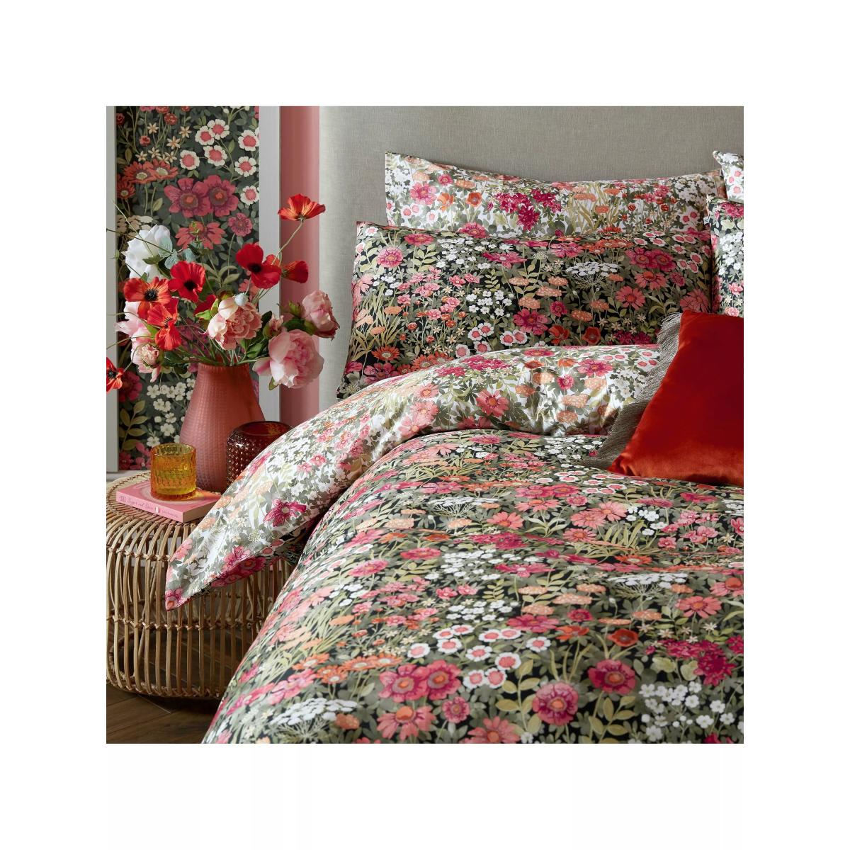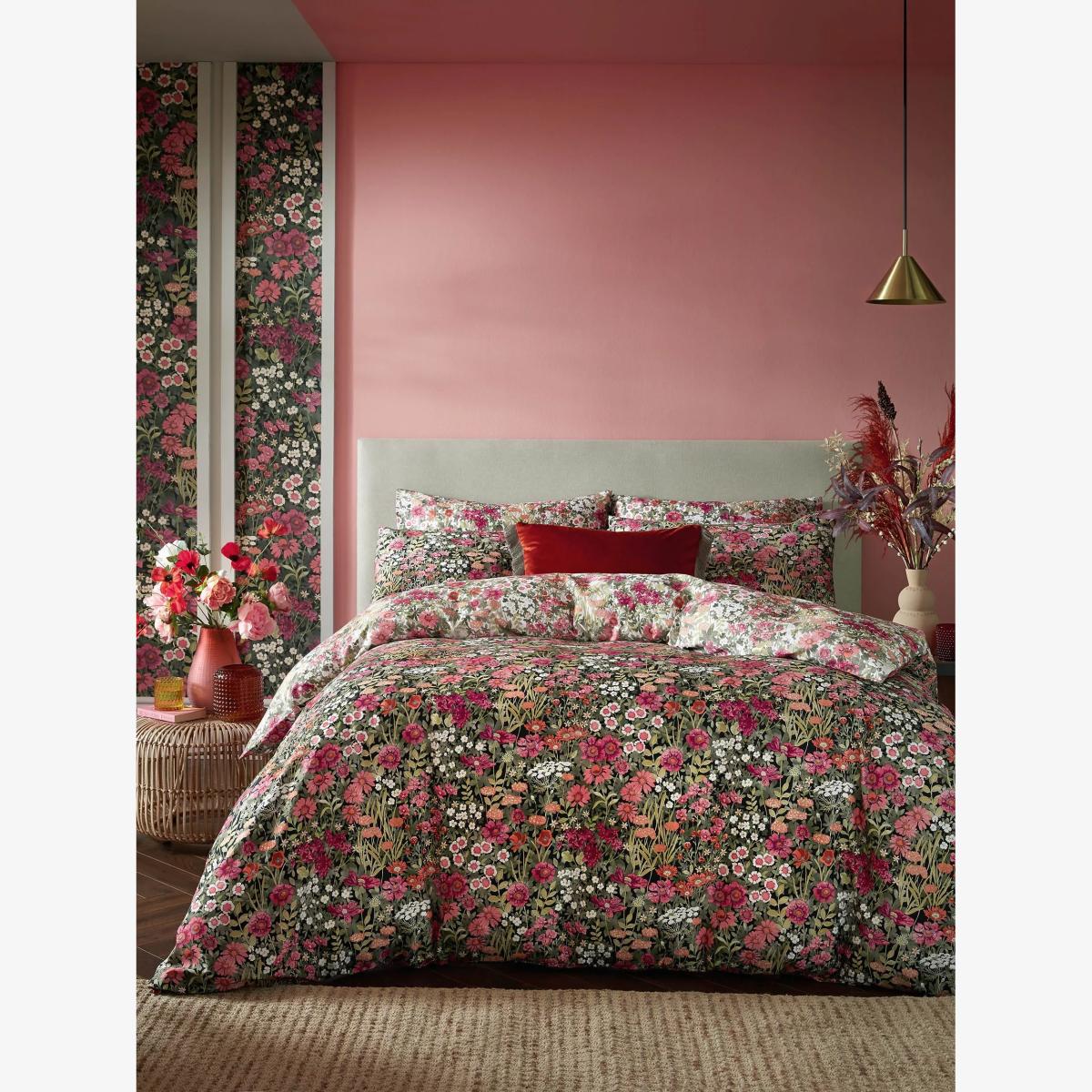 Escape at midnight to a luminous secret garden. Designed with pops of colour of vibrant red and orange floral blooms, against a deep black background, Wallflower Night Garden creates an enchanting midnight landscape. The reverse of the design has a fresh, spring feel with beautiful tones of pinks and oranges on a soft white background. This bed linen is printed onto 100% cotton sateen with a 220 thread count for a soft and supple feel. Each set comes packed in a coordinating fabric tote bag, perfect for storing your bedding or for use as a reusable bag. All sets come with 2x standard pillowcases. Bedding sizes To fit duvet/pillow size (cm) Standard pillowcase, L75 x W50cm Double duvet cover, L200 x W200cm King duvet cover, L220 x W225cm Super king duvet cover, L220 x W260cm