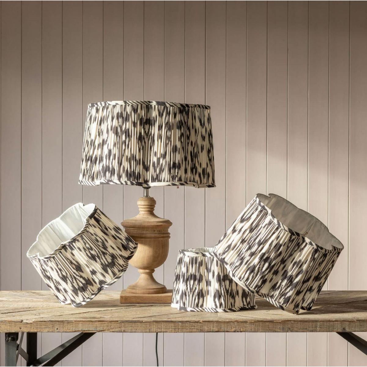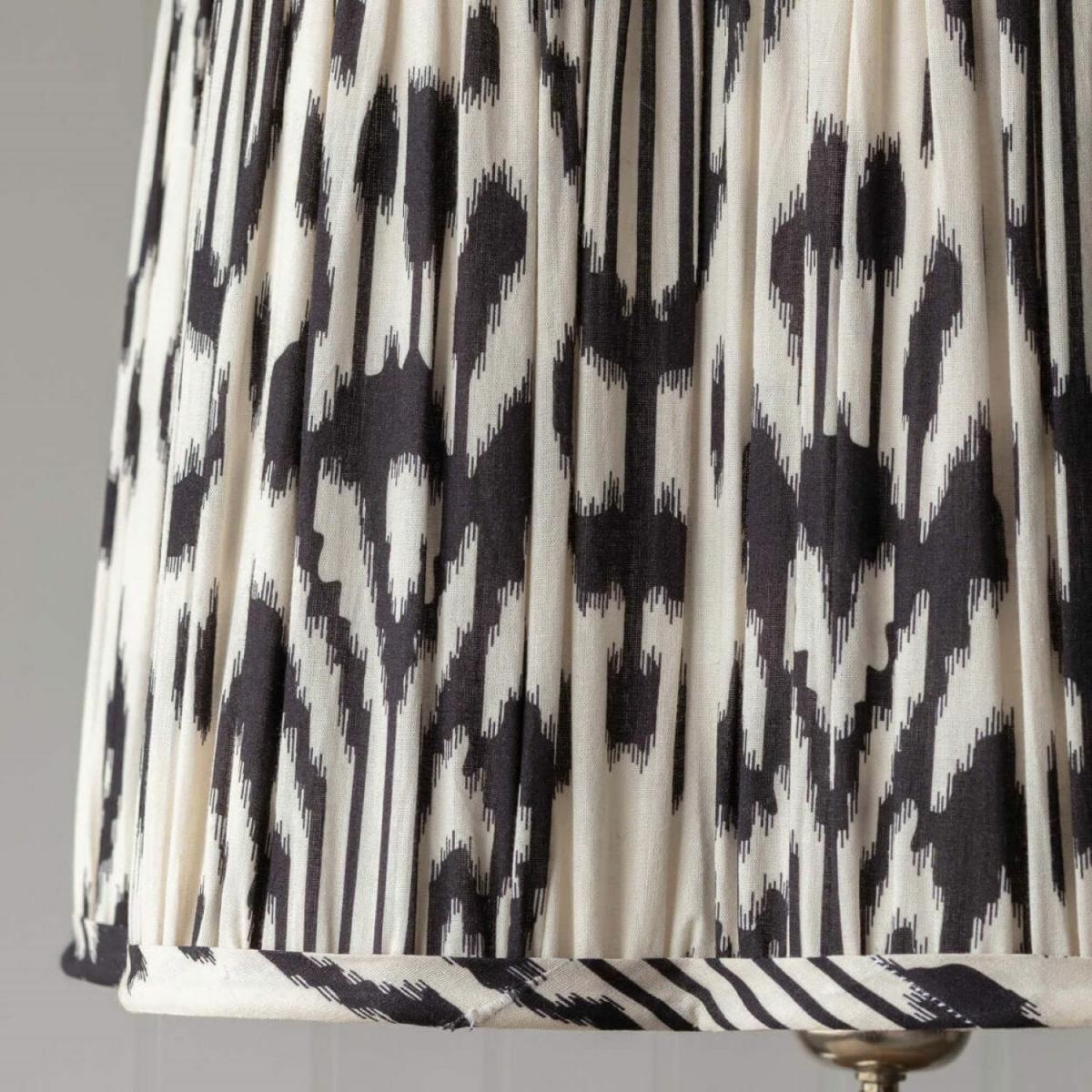 I love this black and white ikat shade for its bold pattern and versatile appeal. It works especially well in eclectic, boho, or modern interiors, where it can add visual interest without overpowering the space. The striking monochrome palette makes it easy to incorporate into colour schemes-pair it with neutral tones for a sleek look or with vibrant hues for a pop of pattern. Practical styling tips include using it on a side table or as a statement pendant, and pairing it with simple, understated lamp bases to let the shade do the talking. Its pattern also lends itself well to layered textures, so consider pairing it with natural materials or soft textiles to create a well-rounded, stylish vignette.