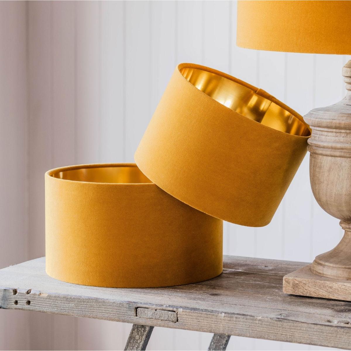 Covered in a dusky shade of yellow velvet, our Maize Velvet Lamp Shades bring undeniable elegance to your home. Finished with a lustrous gold inner that reflects a warm, inviting glow, these shades add a luxurious finishing touch. Available in a variety of sizes to suit any table lamp.