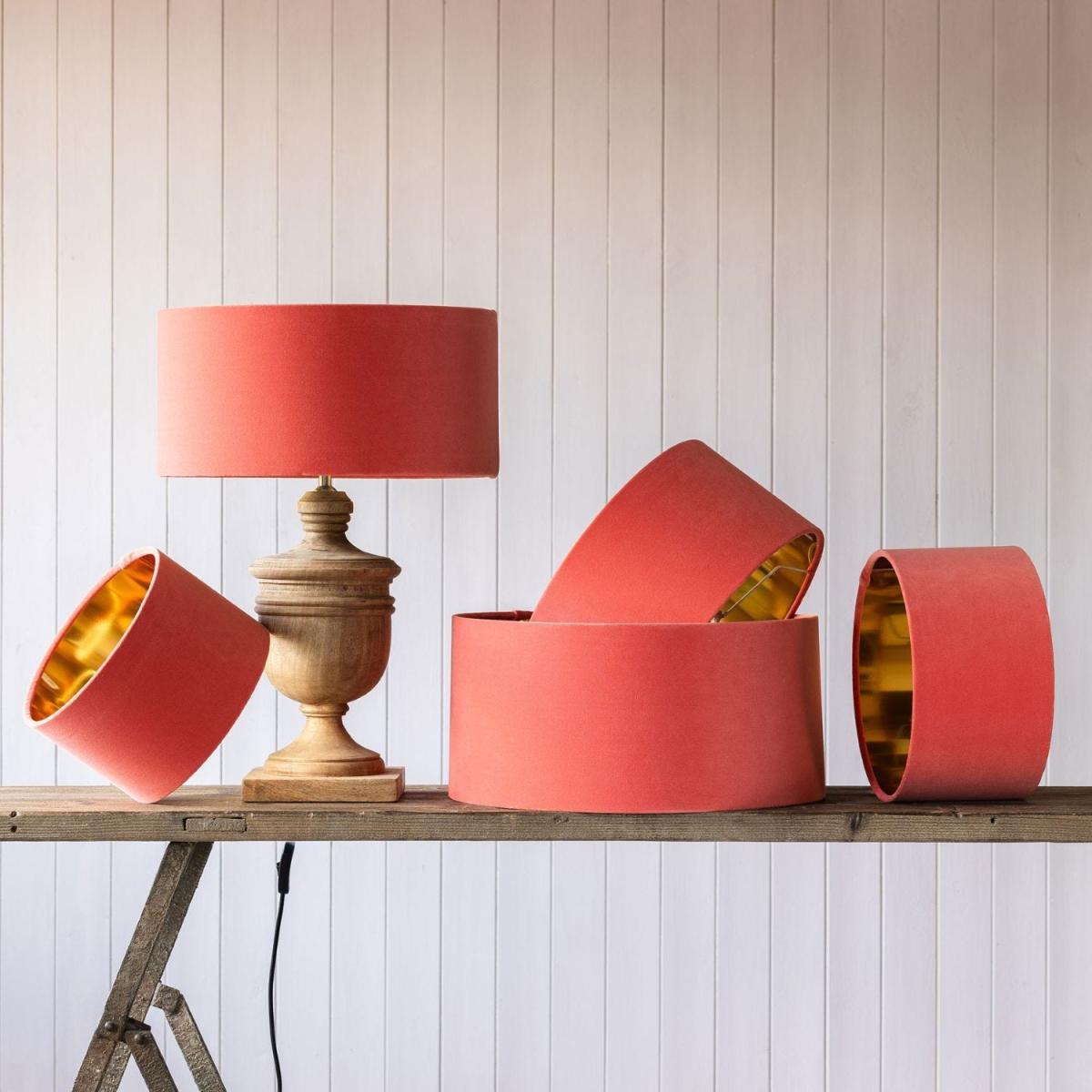Covered in a refreshing shade of pink velvet, our Coral Velvet Lamp Shades bring undeniable elegance to your home. Finished with a lustrous gold inner that reflects a warm, inviting glow, these shades add a luxurious finishing touch. Available in a variety of sizes to suit any table lamp.