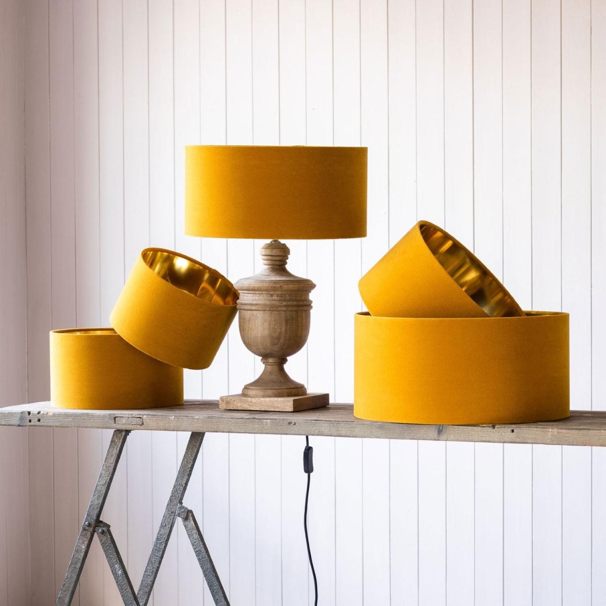 Covered in a dusky shade of yellow velvet, our Maize Velvet Lamp Shades bring undeniable elegance to your home. Finished with a lustrous gold inner that reflects a warm, inviting glow, these shades add a luxurious finishing touch. Available in a variety of sizes to suit any table lamp.