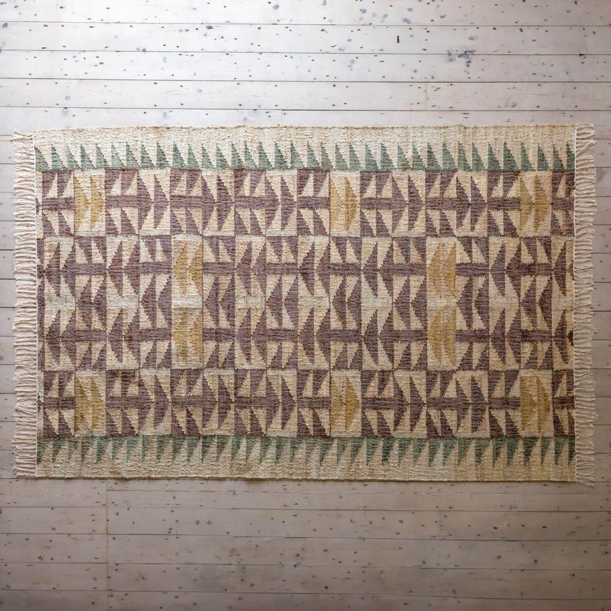 I love the Altan Kilim for its versatile geometric pattern, which adds visual interest without overwhelming the space. It's an excellent choice for both modern and eclectic interiors, working particularly well in living rooms or bedrooms where a touch of warmth and texture is desired. Practical styling tips include layering the rug over neutral flooring to create contrast or pairing it with complementary cushions and throws in similar earthy tones for a cohesive look. Its size also makes it perfect for larger seating areas or even under a dining table, anchoring the space with a stylish yet functional element.