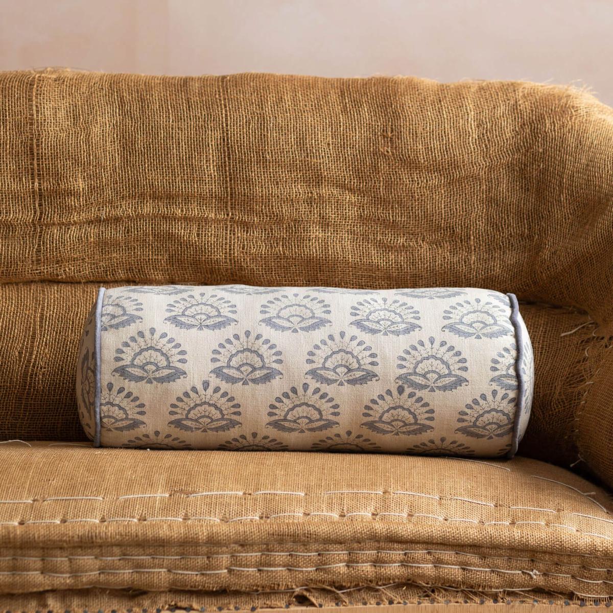 A timeless finishing touch for a bed or sofa, these bolster cushions are hand-block printed using traditional wooden block techniques and soft cotton fabric. Finished with a velvet piped edge, they pair beautifully with neutral or colourful interiors alike.