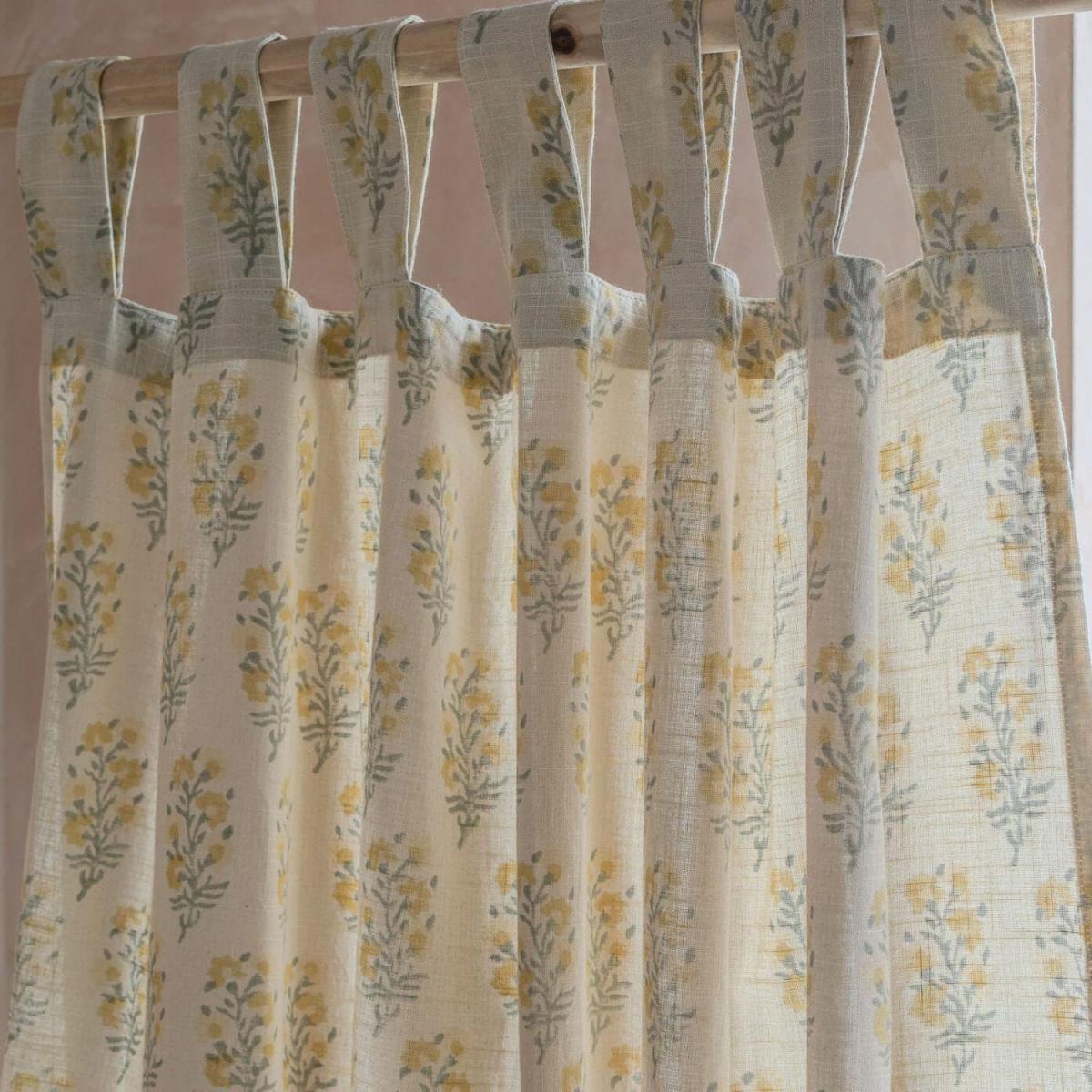 Traditional printing techniques have been used to create the antiqued floral patterns in these curtains. Each flowing curtain has been made in Jaipur from a light, cotton fabric, making them ideal for filtering out light or layering for a more dense coverage. Curtains are sold individually.