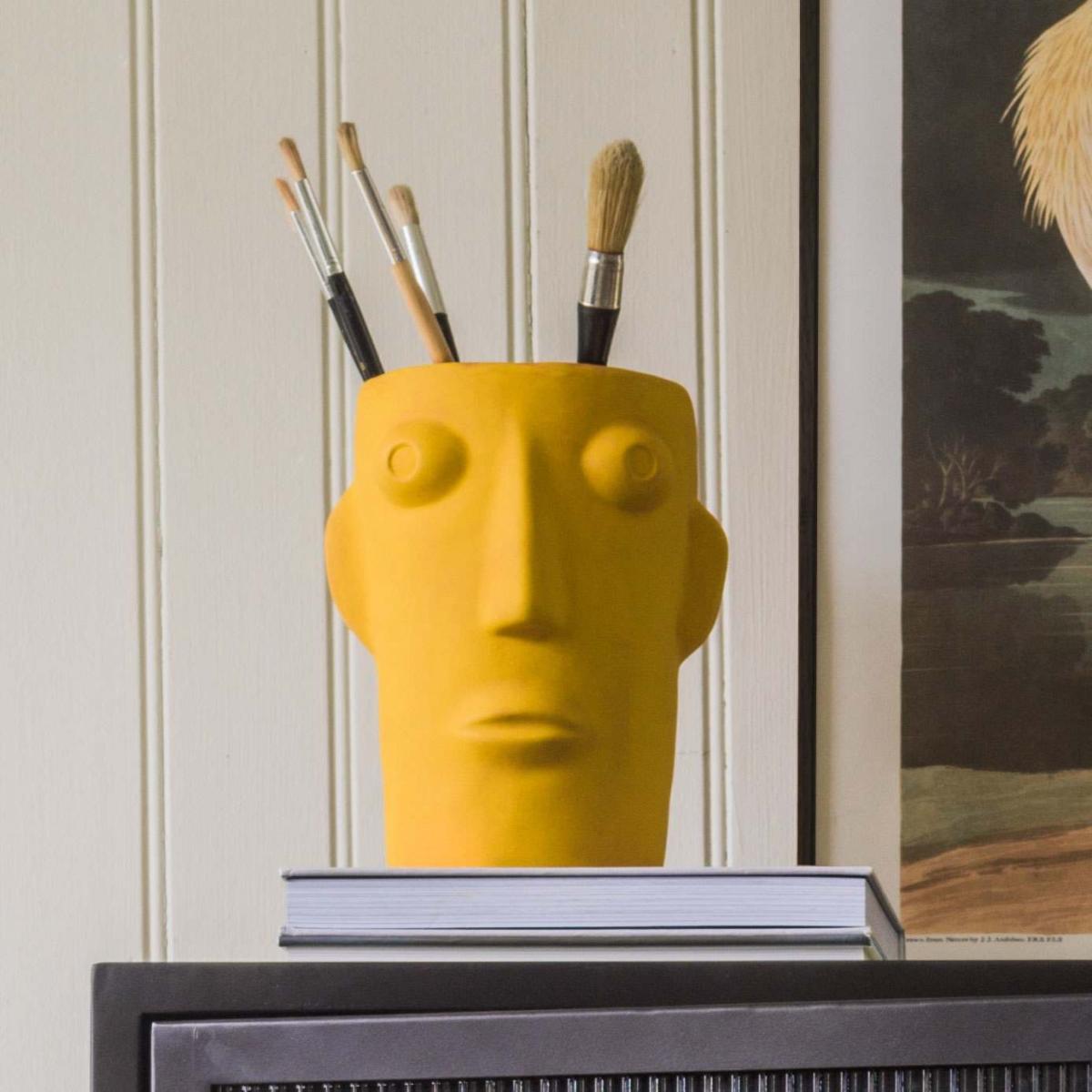 I love this yellow face vase for its bold, modern look that really makes a statement. It works particularly well in contemporary and eclectic interiors, adding a pop of colour and a touch of sculptural interest. For styling, I’d suggest keeping it simple-perhaps with a few dried or fresh stems that complement the yellow, or even using it as a standalone piece on a shelf or sideboard to highlight its unique shape. Its bright hue makes it perfect for injecting some personality into neutrally colour-themed rooms, and it pairs nicely with natural textures or minimalist decor for a chic finish.