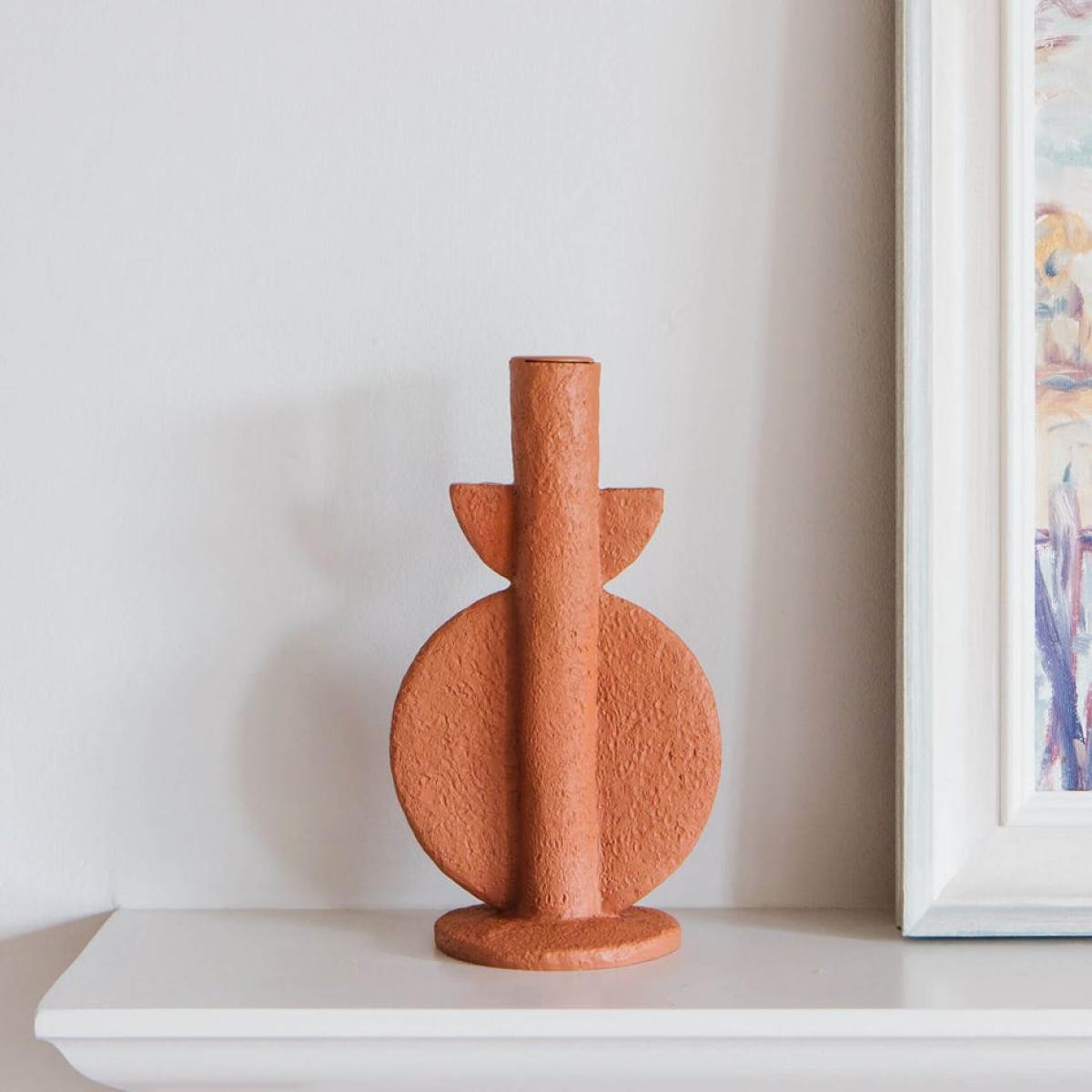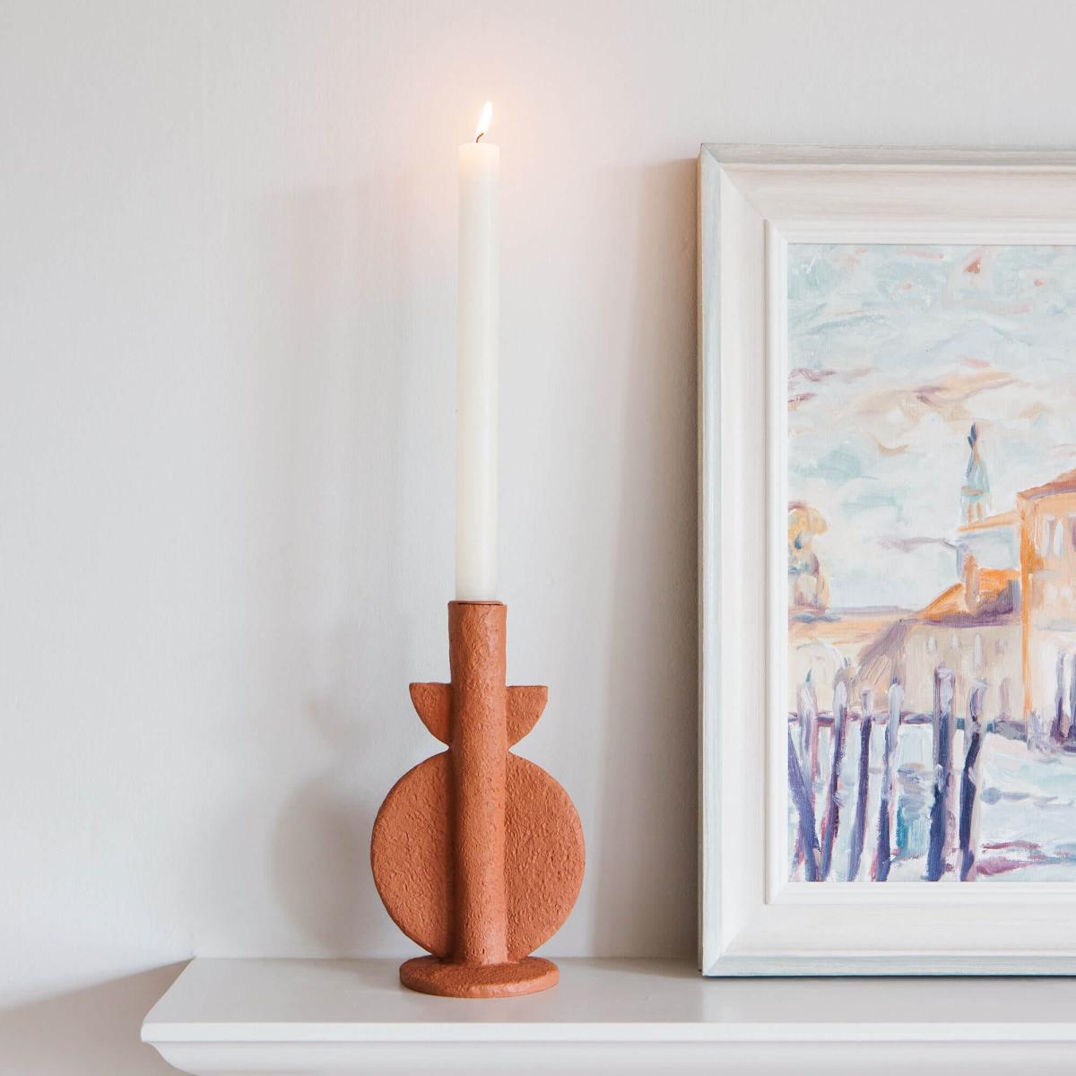 I really like the Ange candle holder for its bold, sculptural shape and warm terracotta finish, which adds a touch of earthy texture and colour to both traditional and contemporary interiors. It works particularly well in spaces that embrace natural materials and neutral palettes-think open-plan living areas or cosy mantelpiece displays. For styling tips, try pairing it with other natural accessories like woven blankets or wooden accents to emphasise its organic feel. To really make it pop, position it on a mantel, sideboard, or even as a centrepiece on a dining table, and layer with candles of varying heights for a curated, layered look.