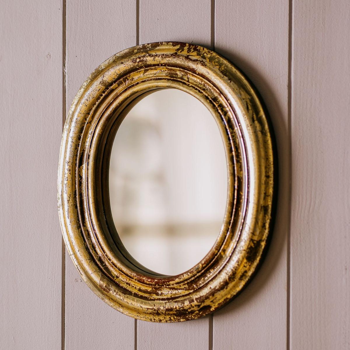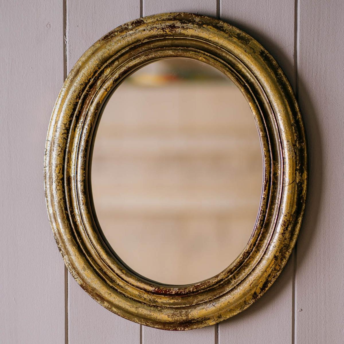 Graham and Green Antiqued Gold Large Oval Wooden Wall Mirror