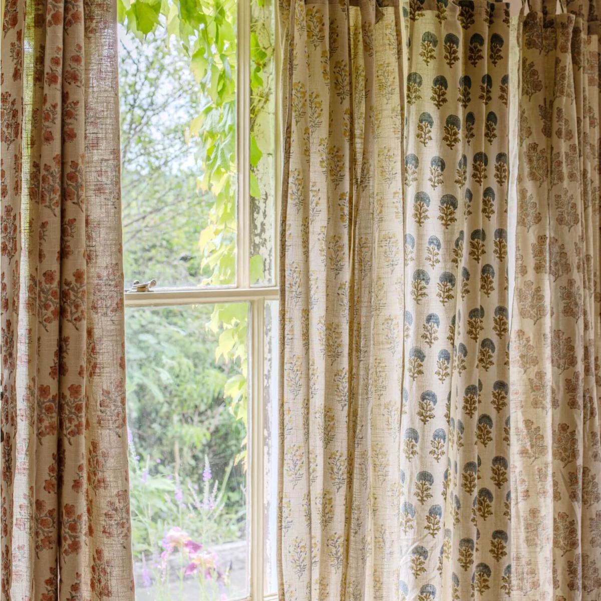 I love these botanically inspired curtains for bringing a touch of pattern and colour into a room without overwhelming the space. The floral block print offers a subtle yet lively visual that pairs well with both neutral and more vibrant interiors. They're especially versatile in eclectic, boho, or vintage-inspired schemes, but can also add character to more modern settings when combined with contemporary furniture. Practical styling tips include layering with plain or lightly textured curtains to enhance the print, and choosing light or neutral wall colours to allow the floral patterns to stand out. These curtains work beautifully in living rooms or bedrooms, bringing a gentle yet elegant focal point.