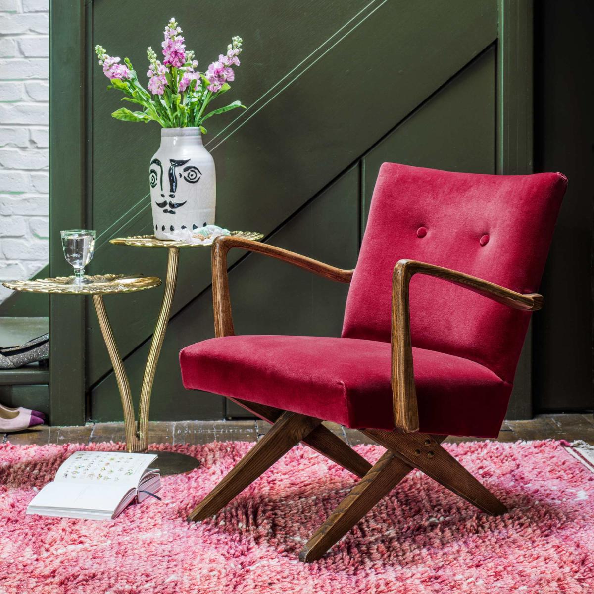 The Graham and Green Axel is a great statement armchair, especially for adding a splash of colour and texture to a modern or eclectic interior. I love how the raspberry velvet brings a richness and warmth, making it perfect for cosy corners or as a standout piece in a living room or bedroom. Its bold hue pairs nicely with neutral backgrounds or mixed with other colour accents for a more vibrant scheme. To style it effectively, consider placing it alongside natural wood or brass accents to enhance its retro vibe, and keep surrounding accessories minimal to let the chair truly shine. Practical tips include balancing it with a neutral cushion or throw to add contrast and ensure the velvet stays looking great with regular care.