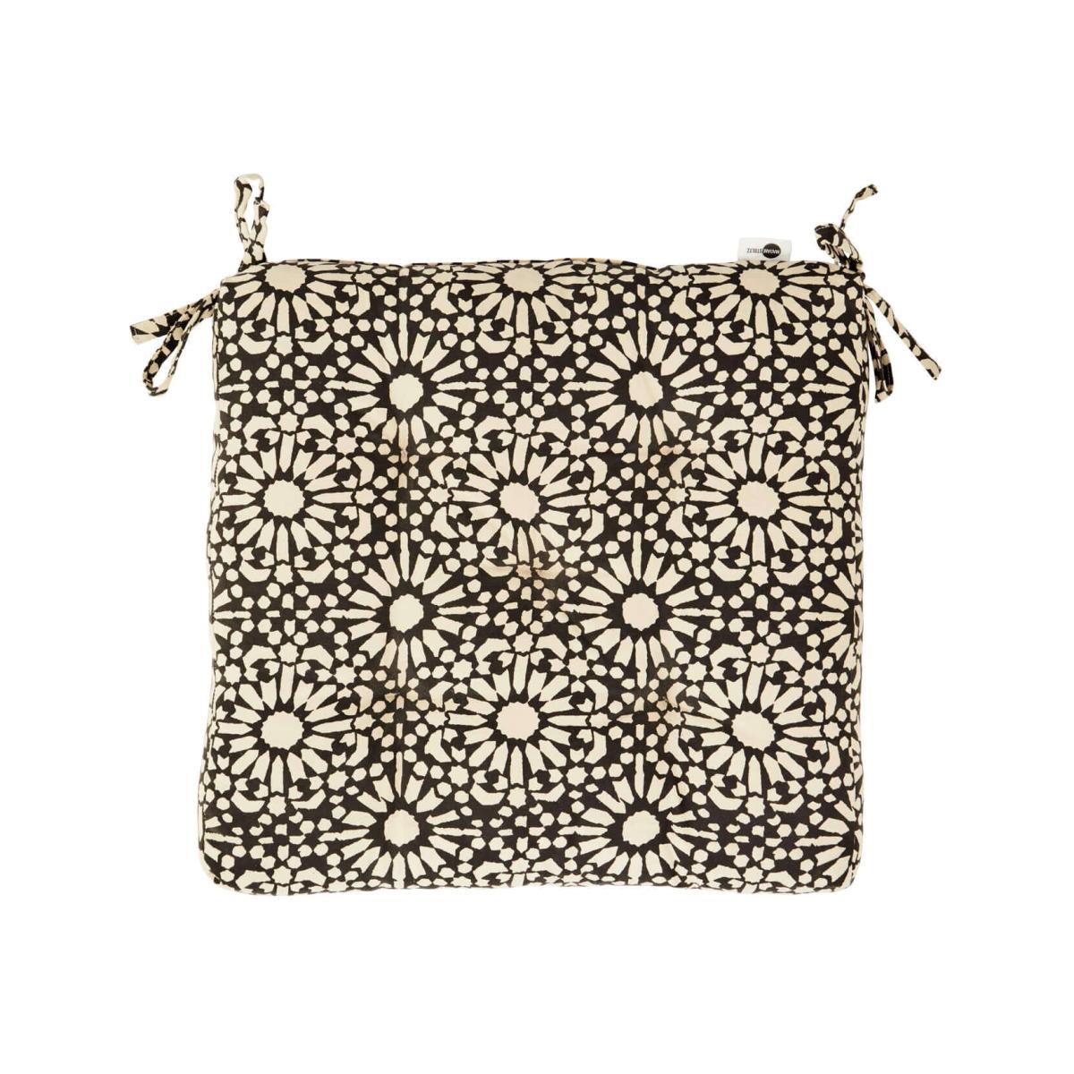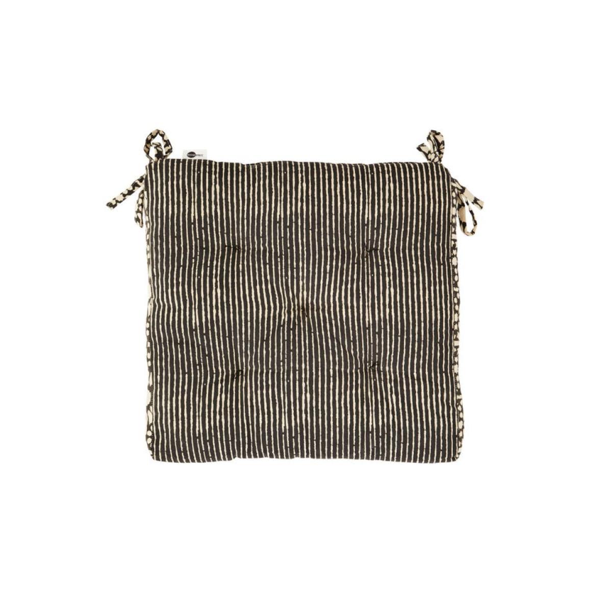 A bold addition for your dining chairs, this soft cotton seating pad features an abstract daisy design and a monochrome striped reverse and matching seat ties. W45 x D45cm. Made of cotton with a cotton filling. Spot clean with a damp cloth. Colour and pattern may vary. We recommend storing indoors when not in use.