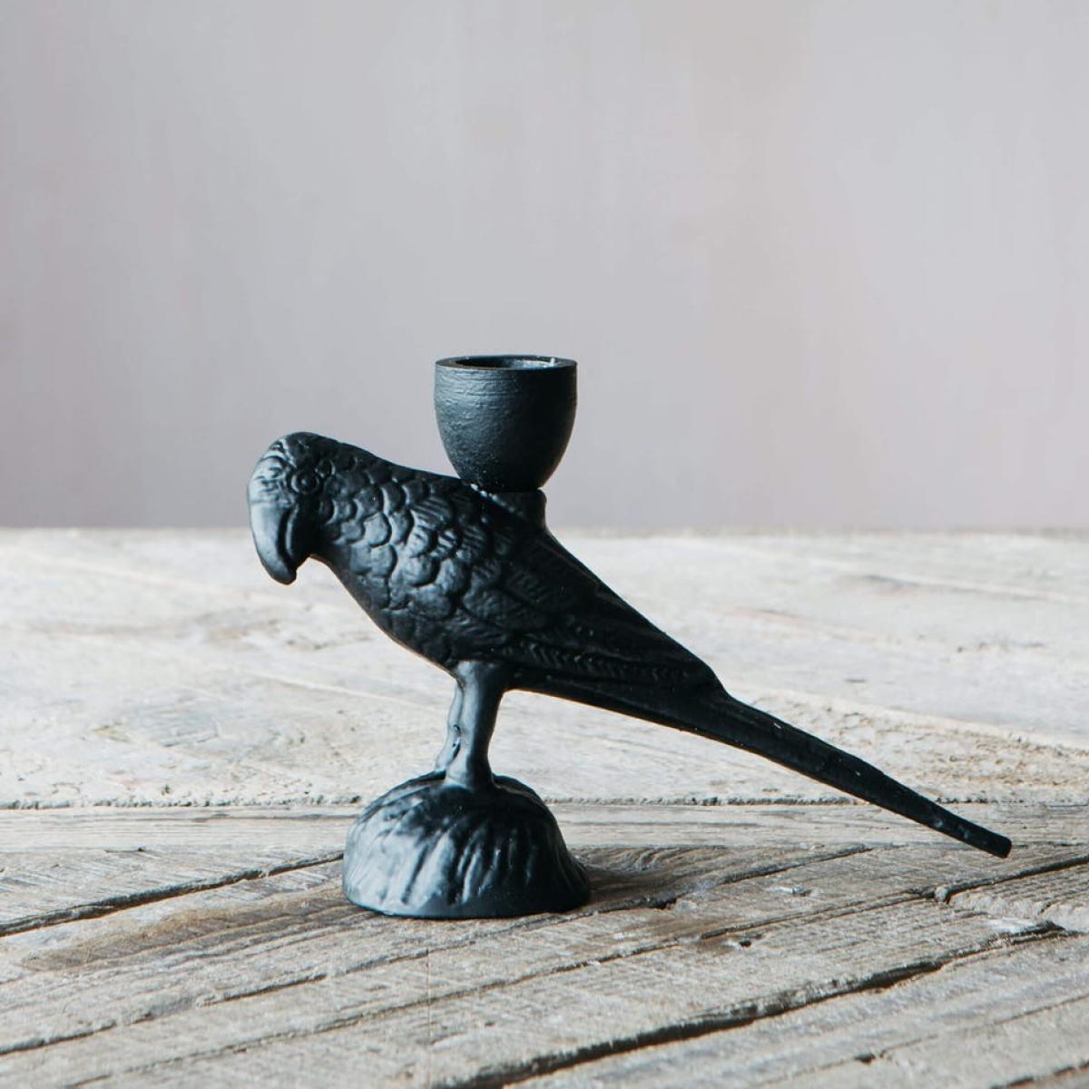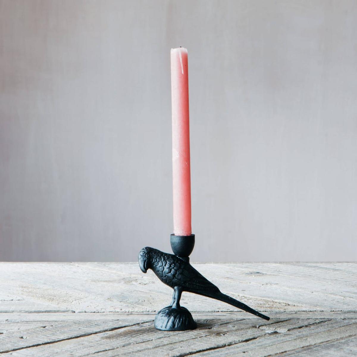 A characterful candlestick shaped like a little bird, top with colourful candles to complement the monochromatic finish. H12 x W16 x D6cm. Made of metal. The exact colour and finish will vary.