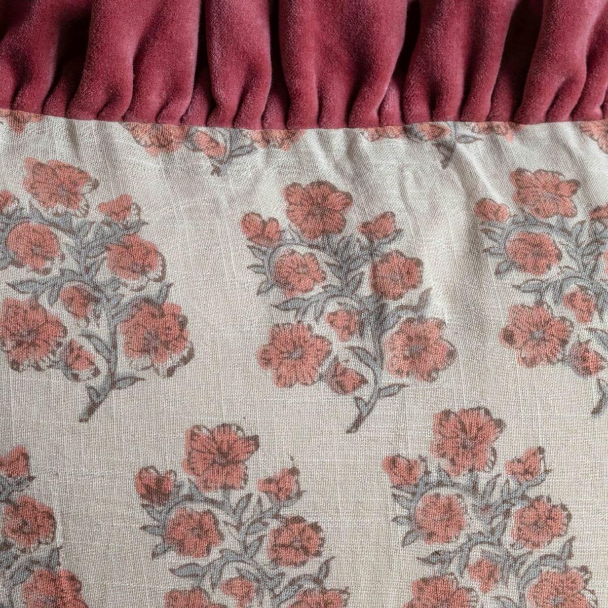 Traditional block printing techniques have been used to create the delicate floral designs on these Sherpa Throws. Made in Jaipur, India from lightweight cotton with a velvet frill lining, ideal for layering over your bedding.