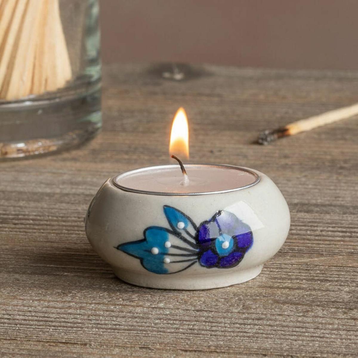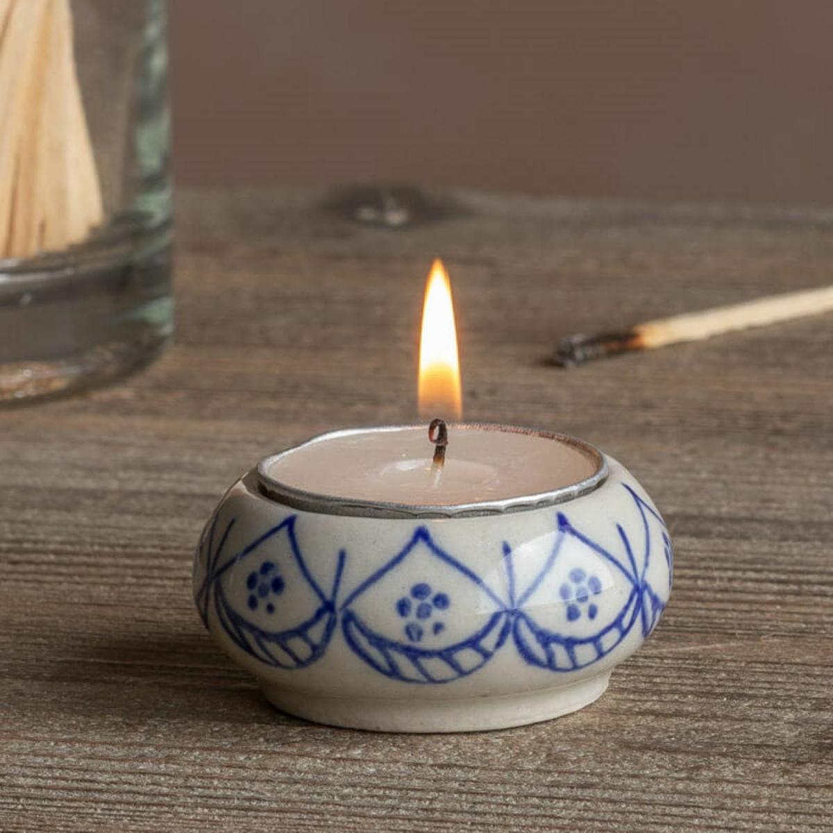 Perfect for adding ambiance to a dinner party or a cosy night in, these ceramic tealight holders feature a range of delicate designs painted on a contrasting white surface.