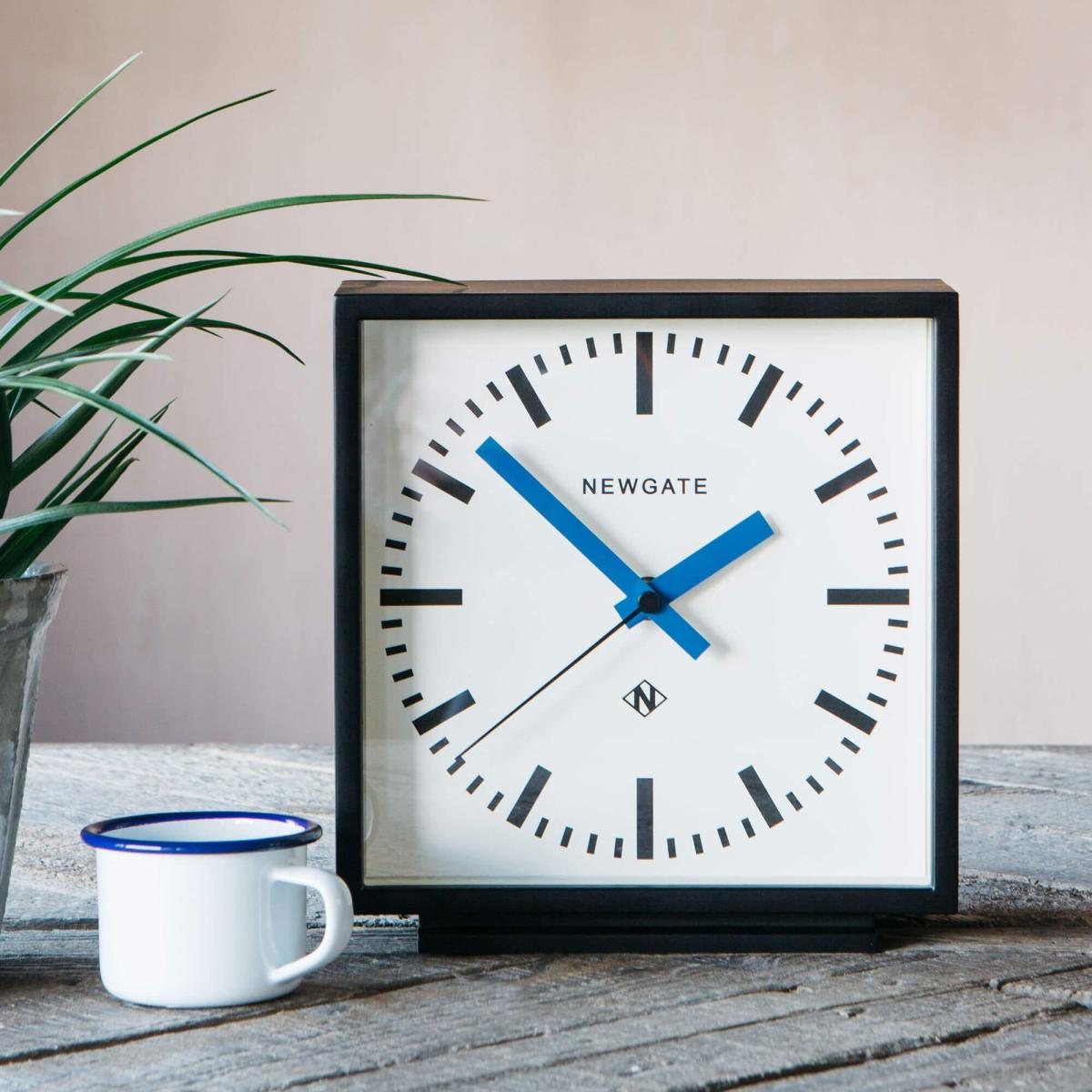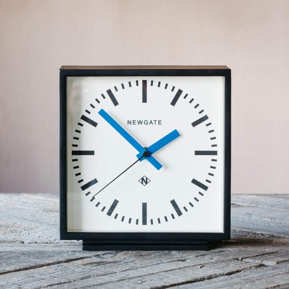 A small retro-inspired mantel clock in a sleek black case. The colourful blu hands move in a constant sweeping motion which keeps that noisy tick away.