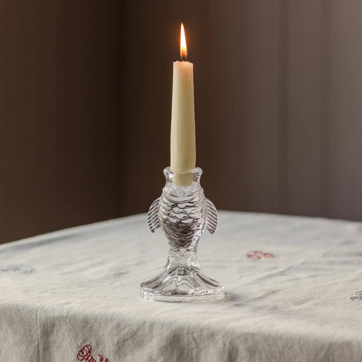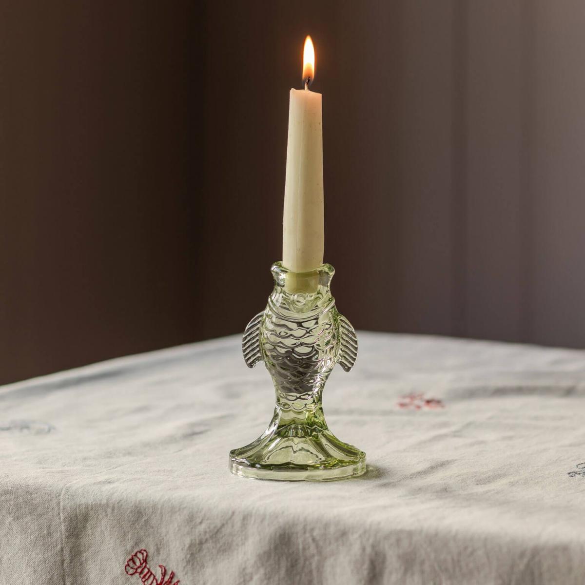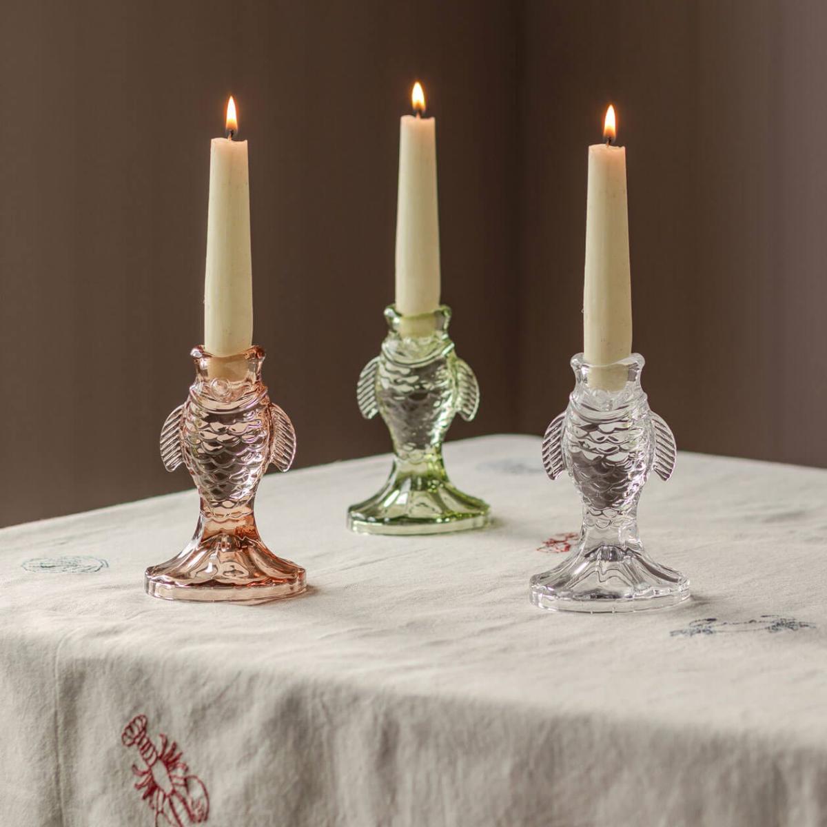 Crafted from opaque glass in a range of soft jewel tones, these fish candle holders are perfect for displaying in a light-filled room, where the intricate details of the scales and fins can be fully appreciated. Ideal for pairing with your favourite Fluoro Dining Candle. H12. 5 x Diameter 8cm. Made from glass. Clean with a soft, dry cloth. Sold individually.