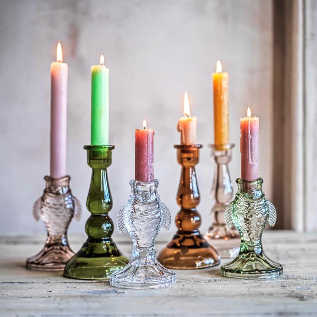 I love this fish-shaped candle holder for its quirky yet elegant appeal. Its warm brown glass adds a touch of retro charm and can work well in both vintage-inspired and contemporary interiors. It’s particularly effective when styled as a conversational piece on a side table or mantle, adding a playful element without overwhelming the space. For practical styling, group it with other mismatched or colourful candle holders for an eclectic look, or keep it simple for a subtle statement-let the shape and colour do the talking. It’s perfect in coastal, boho, or eclectic schemes, bringing a touch of personality and warmth to any room.