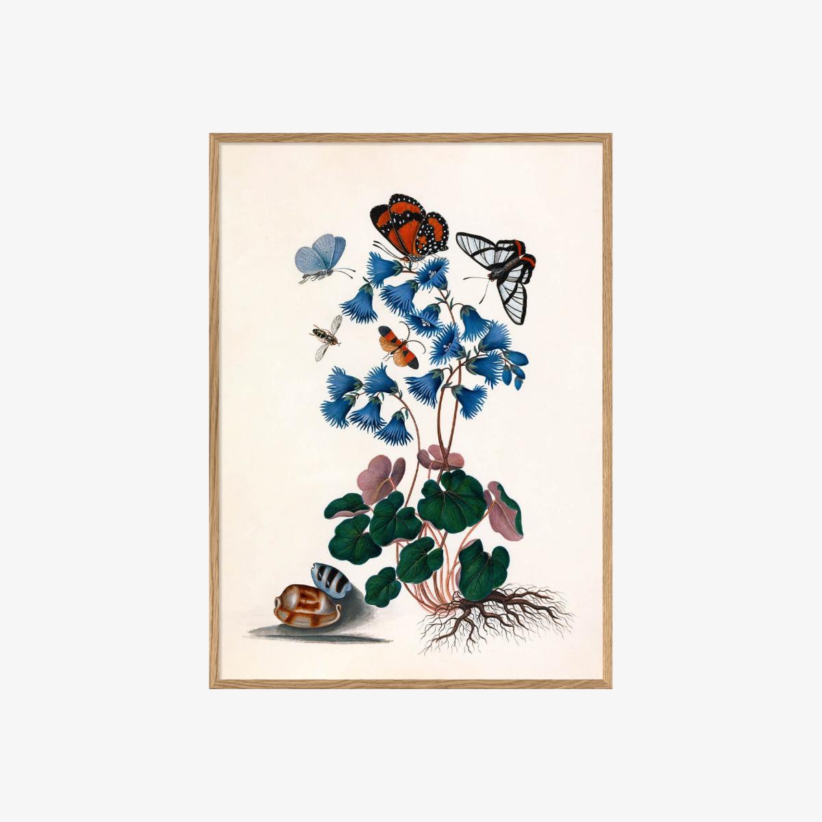 Graham and Green Butterflies and Blue Print with Oak Frame - 30 x 40cm