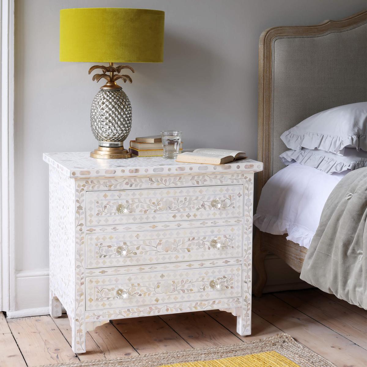 Graham and Green Classic White Mother of Pearl Large Bedside Table