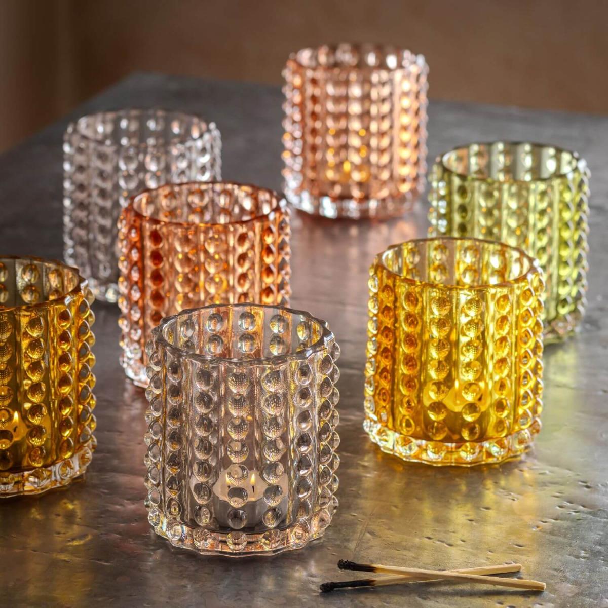 Ignite a cosy ambiance with these tealight holder. With a bubbled texture and candy-coloured glass, you will be able to create a warm glow whilst adding a splash of colour to a mantle or table setting.