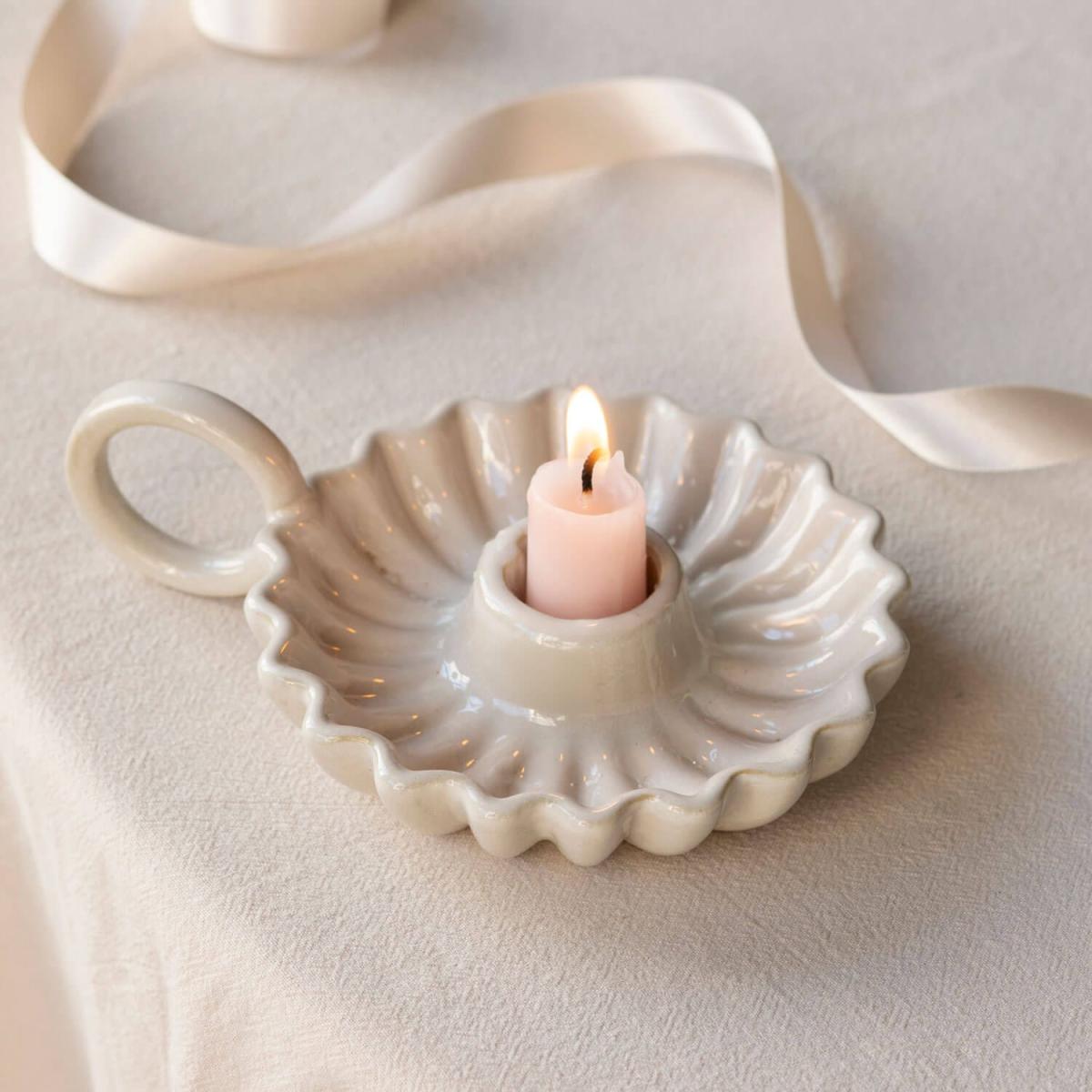 Add a touch of elegance to your home with these stoneware candle holders, finished in a reactive glaze for a subtle two-toned effect. Pair with tall white or beige dining candle to achieve a timeless, classic look.
