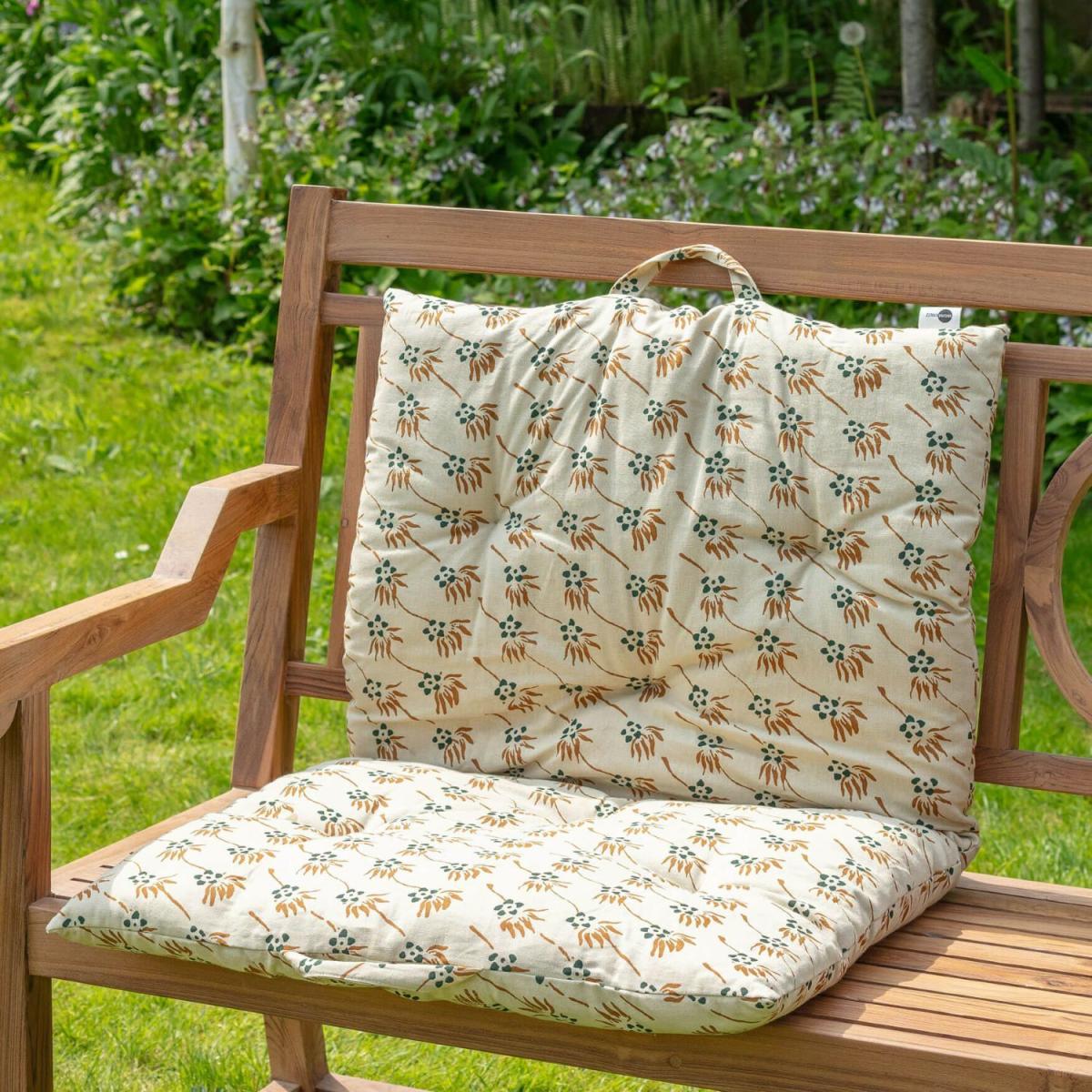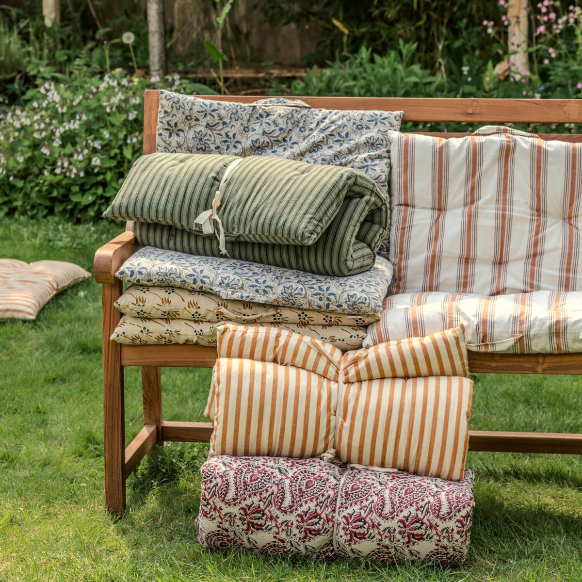 Soften up a bench or window seat with our collection of long padded seat pads, each finished with a vibrant print. Choose from an array of colourful florals, stripes, or botanical designs to suit your style. W100 x D60cm. Made of 100% cotton with a cotton filling. We recommend spot clean only and storing indoors when not in use.