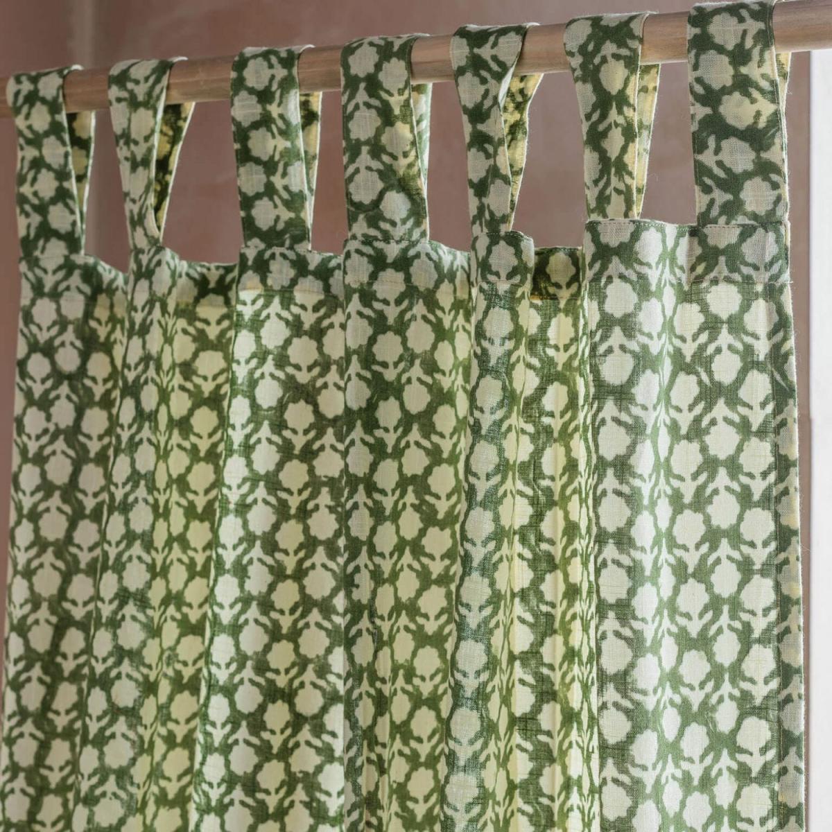 These large flowing curtains have had their floral designs block printed using traditional techniques where the design is carved into a wooden block before the repeat pattern is printed by hand. Each curtain is finished with matching fabric loops to slot onto your curtain rod.