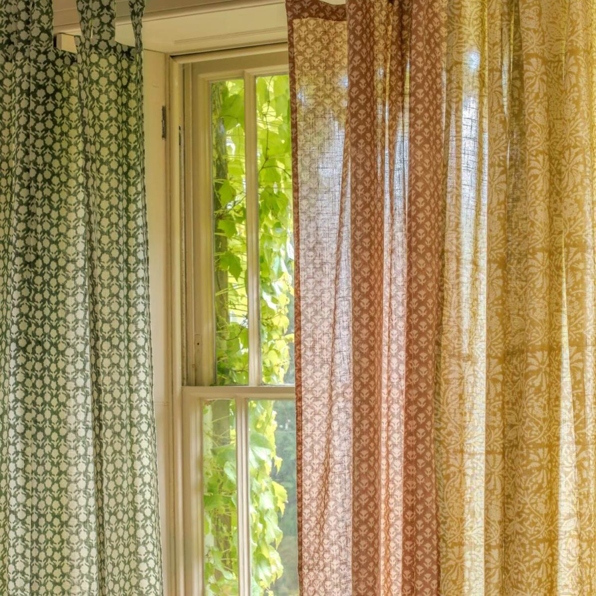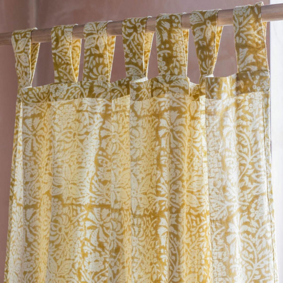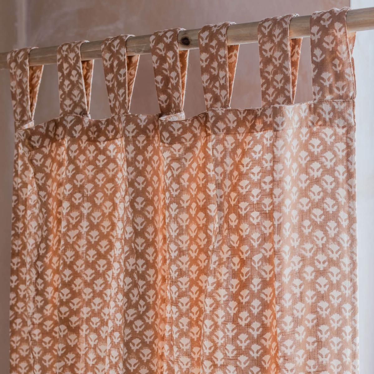 These large flowing curtains have had their floral designs block printed using traditional techniques where the design is carved into a wooden block before the repeat pattern is printed by hand. Each curtain is finished with matching fabric loops to slot onto your curtain rod.