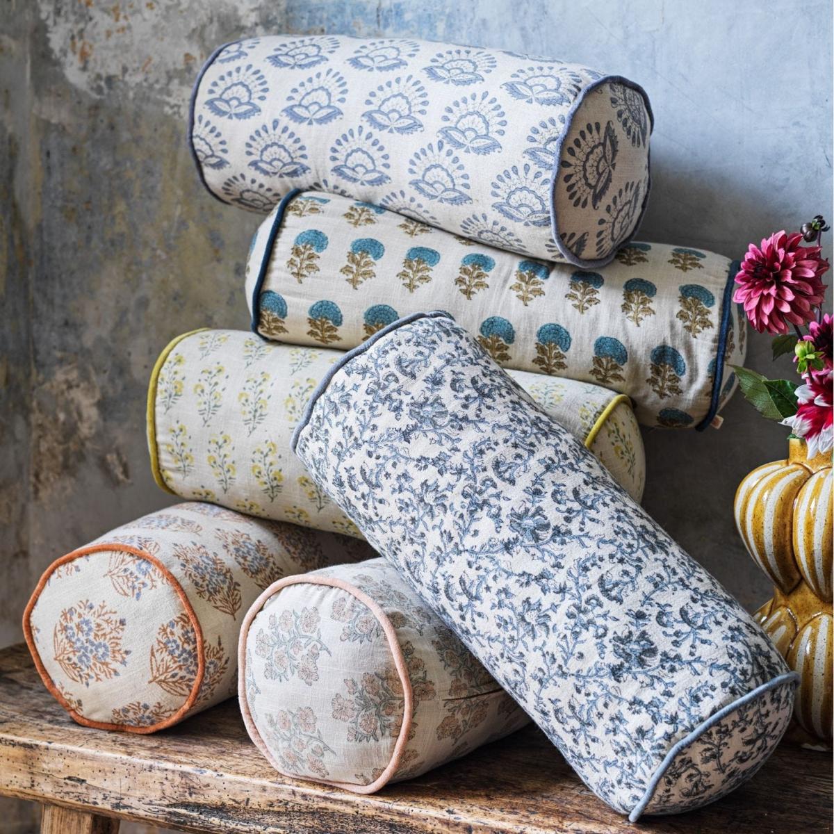 Graham and Green Fiorella Hand-Block Printed Bolster Cushion
