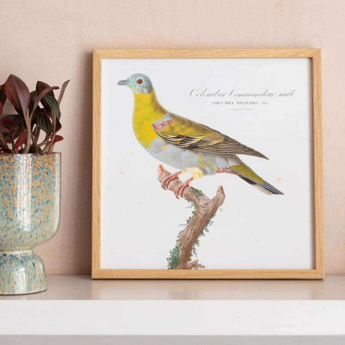 A collection of vintage-style prints taken from a 19th century illustrated book called 'Les Pigeons' by French artist Pauline Knip. Each bird has been printed onto high-grade paper with archival-quality inks and finished with a solid oak frame. H30 x W30cm. Printed onto high-grade paper with archival-quality inks. Set in a solid oak frame.