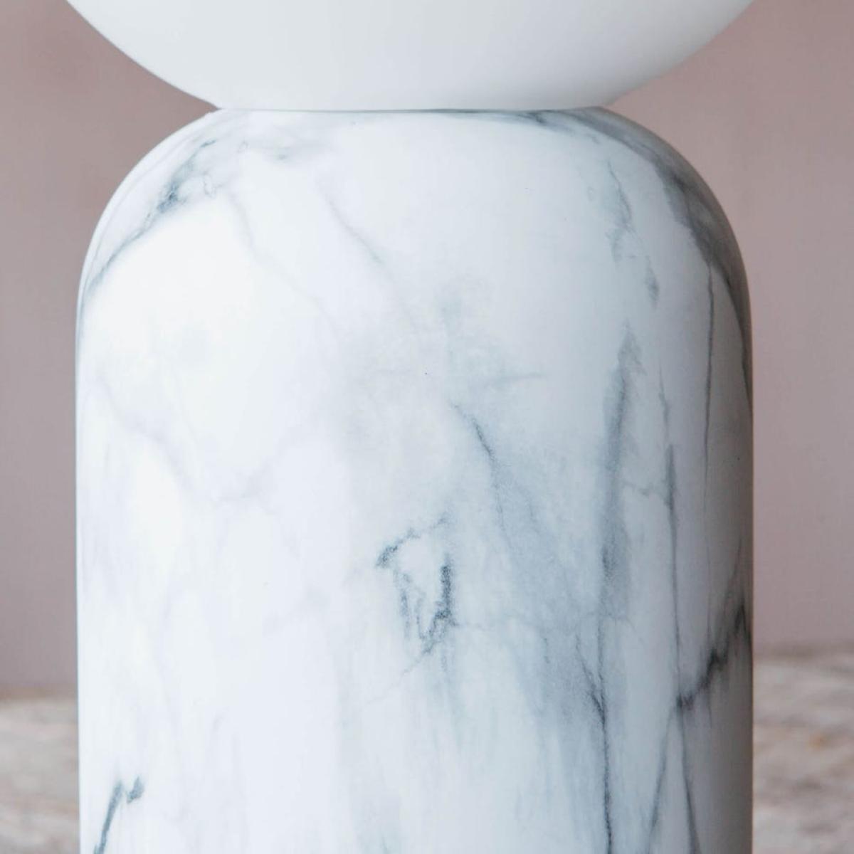 A subtle yet luxurious mid-century table lamp with an iron base printed to look like marble and topped with an opaque globe. Perfect for the minimalist bedroom as a bedside lamp or to add an ambient glow to any room in the house.