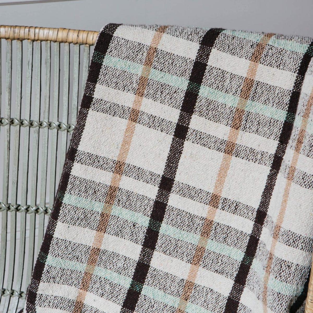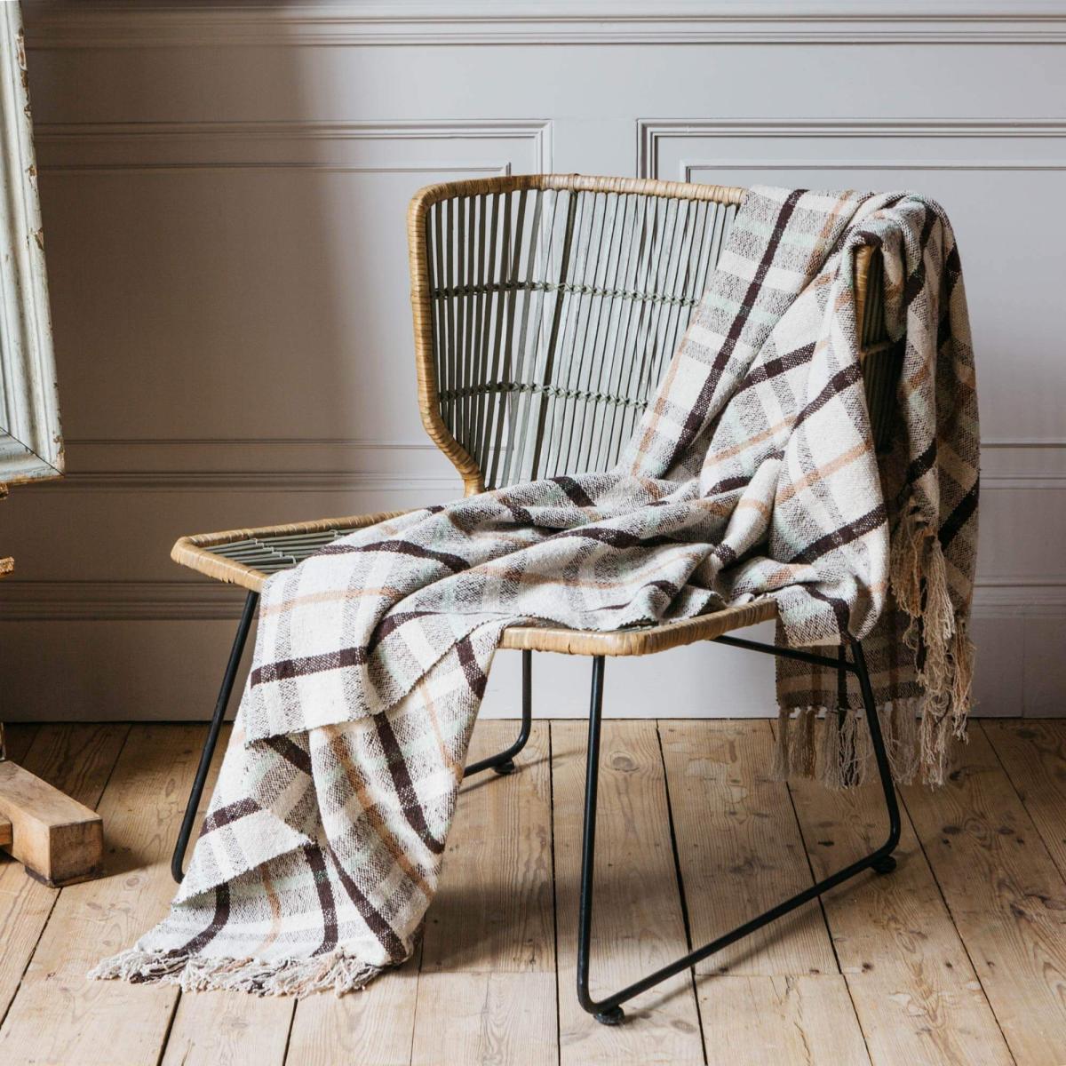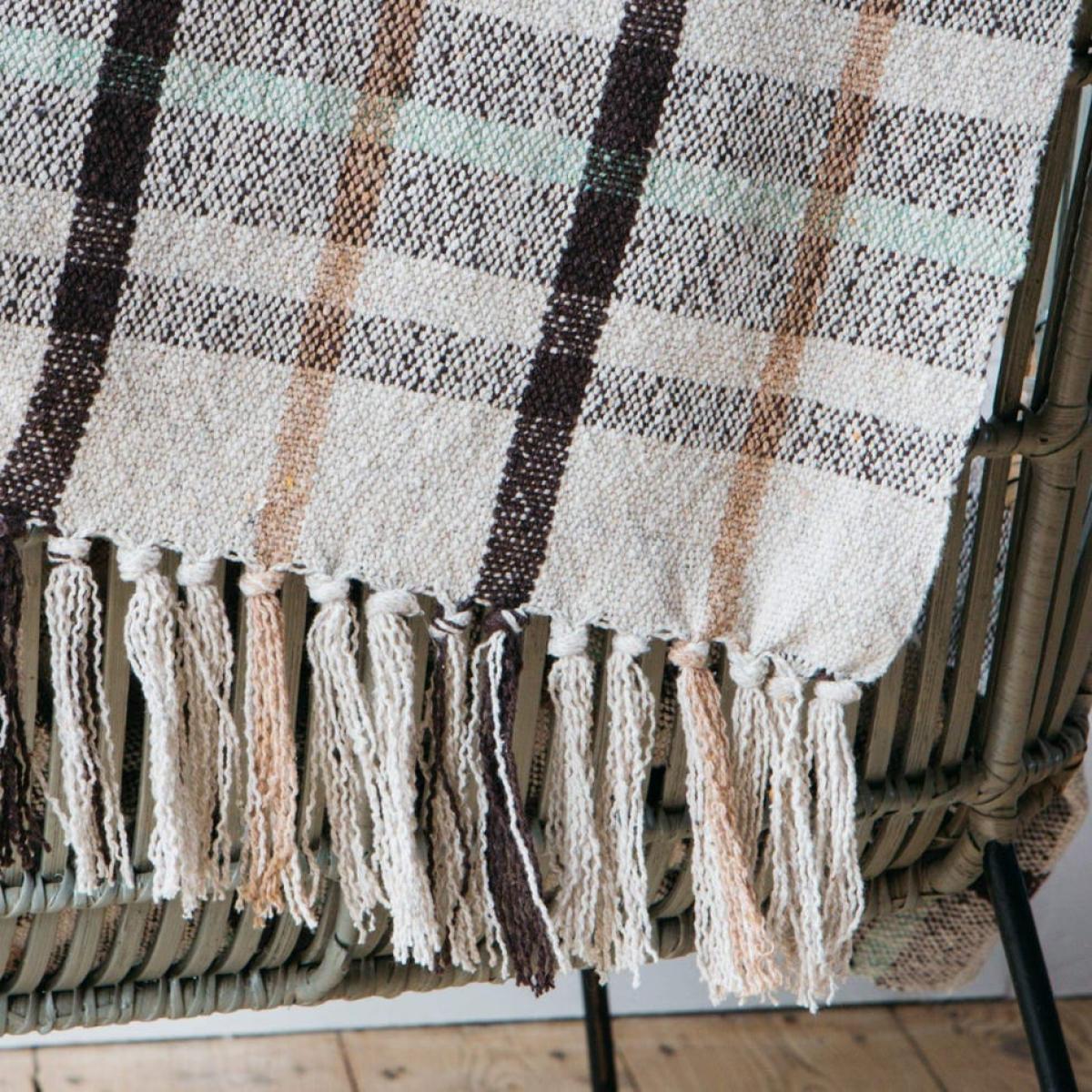 Repurposed from the clothing waste industry, this cosy throw is made from recycled cotton and features a traditional check print and fringing for you to snuggle up on the sofa.