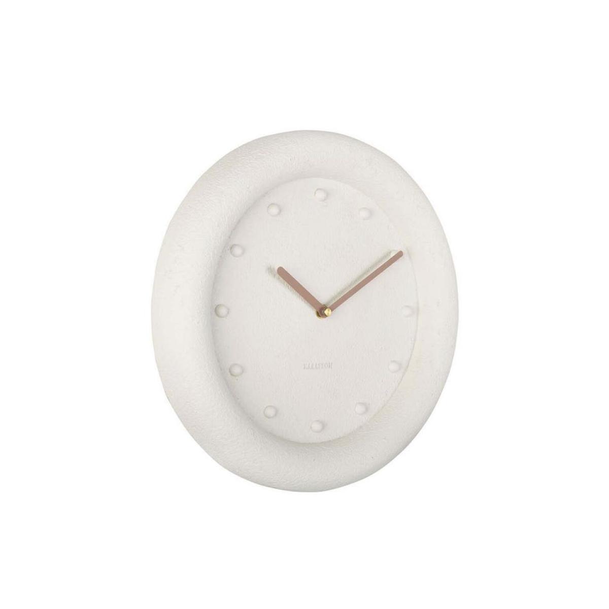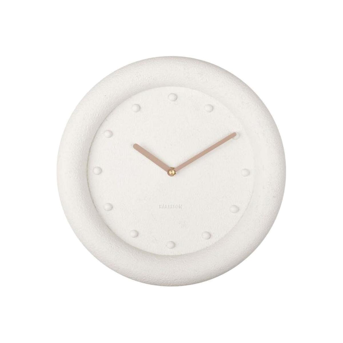Fusing modern technology with an earthy natural finish, this cream coloured wall clock is crafted from polyresin to look like stone. Perfect for adding texture to lime-washed walls in rustic rooms.