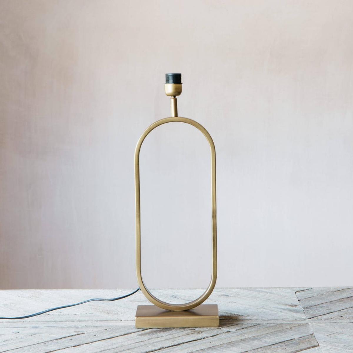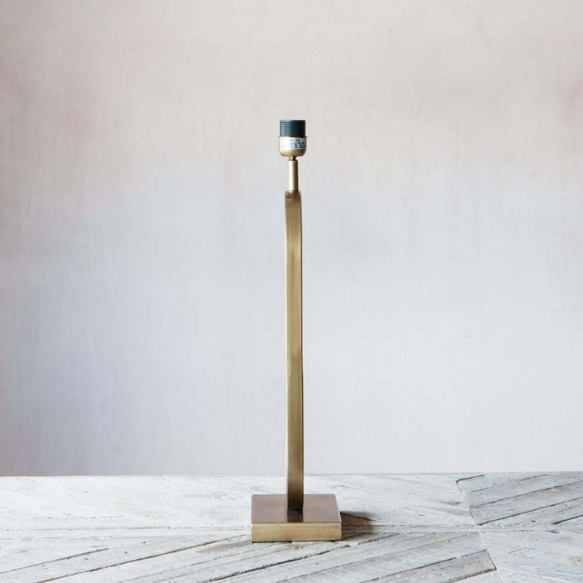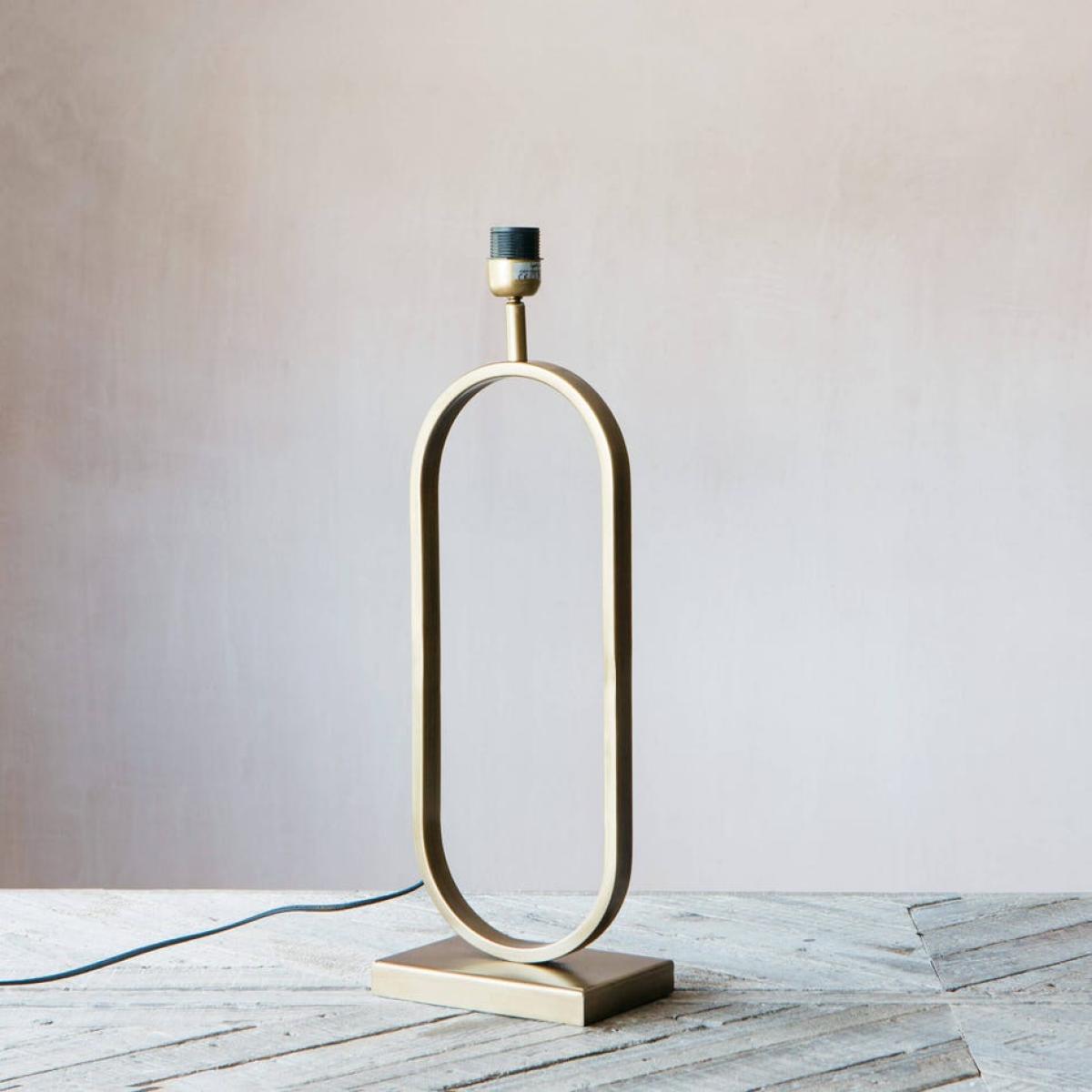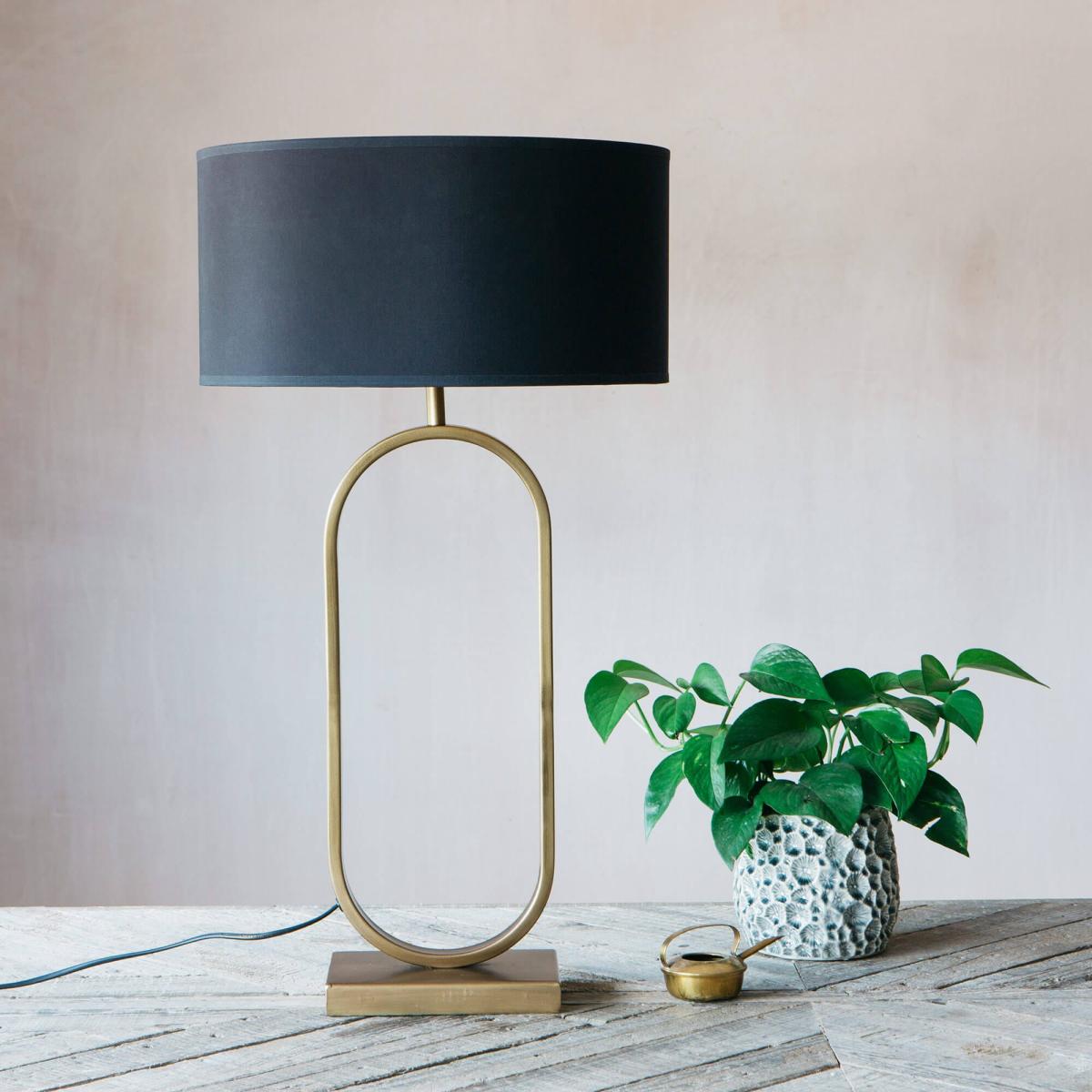A soothing lighting design with a seamless silhouette made of metal in a brass finish. Top with a cotton lampshade to complement the minimalist shape. H55 x W20 x D13cm. Shown with our 16" Black and Gold Cotton Lamp Shade (not included).Requires 1 x E27 Max 40W bulb (not included).Plastic cord: L140cm. Made of metal. The exact colour and finish will vary.