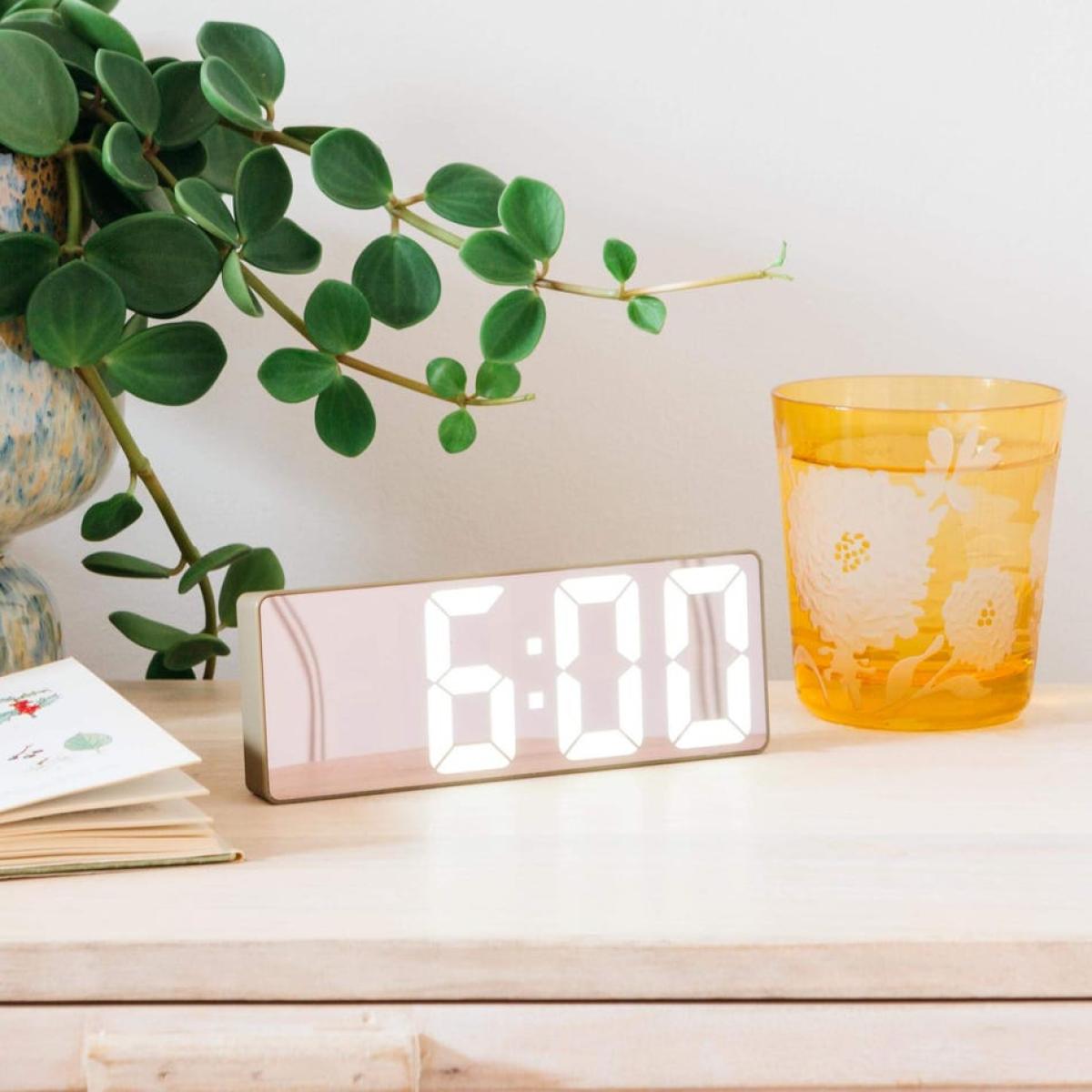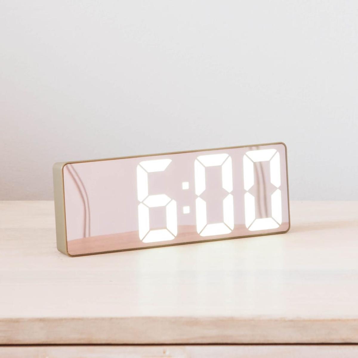 A sleek LED digital clock with a copper mirrored front, the most stylish addition to your bedside table and the best way to start your day.