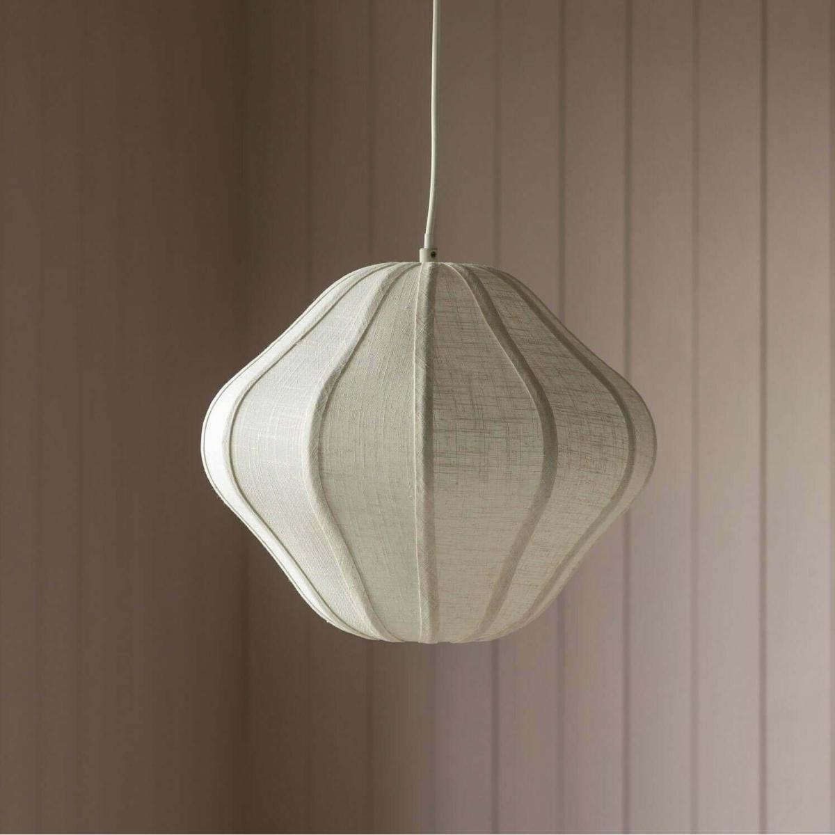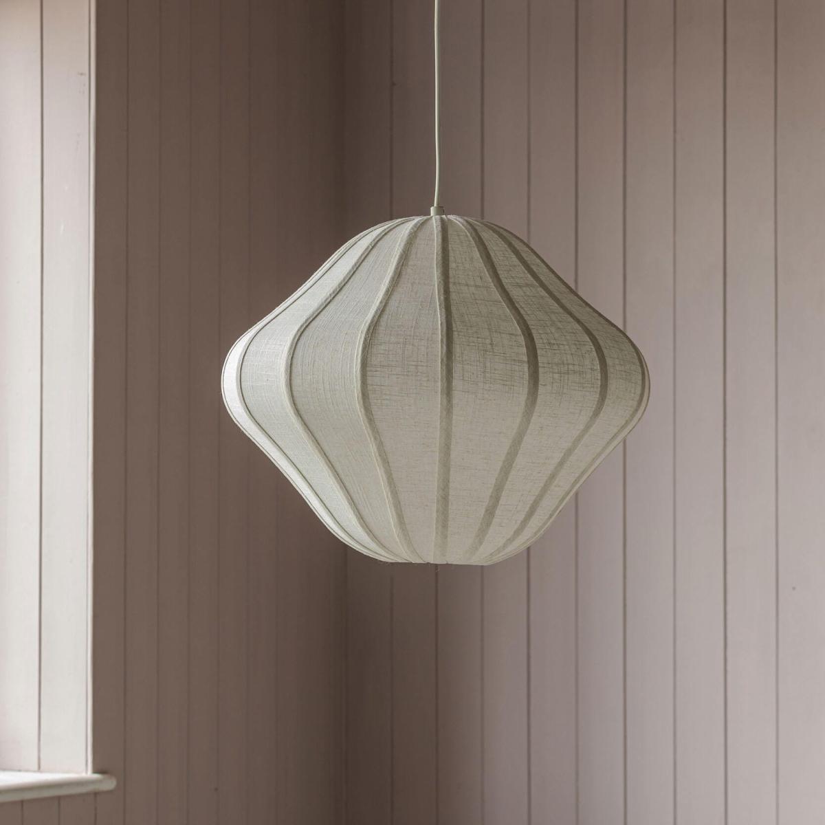 Softly sculptural with a dreamy, organic form, these linen pendant lights cast a warm and inviting glow. Crafted with a delicate fabric stretched over a lightweight frame, their curved silhouettes add an effortless sense of movement and texture to any space.