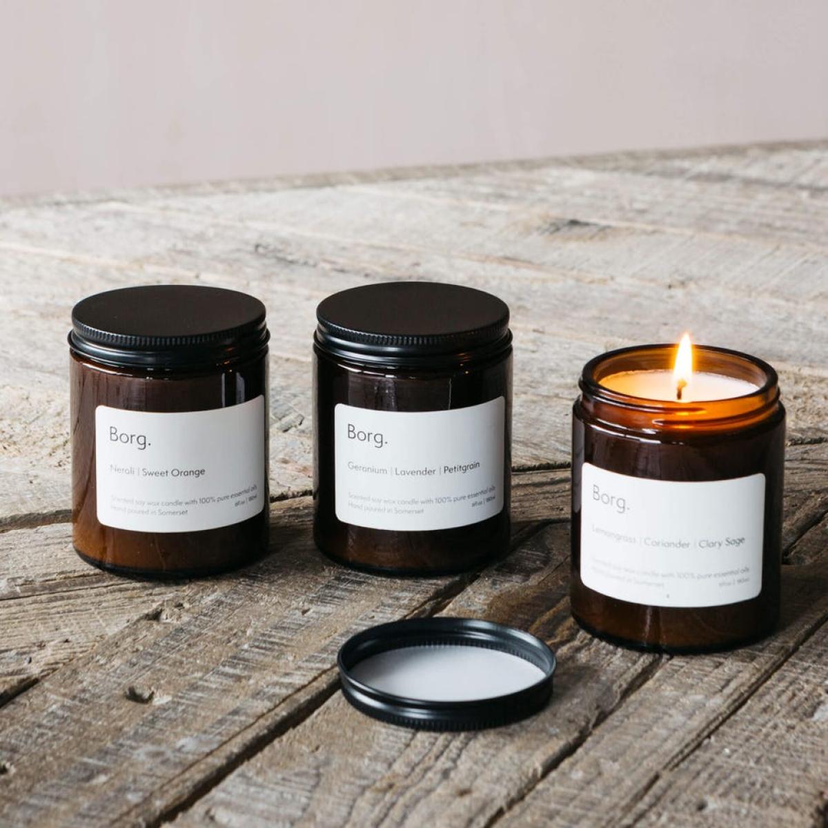 Hand-poured in Somerset by Borg Candles, each of these minimalist amber-glass candles is made from sustainable soy wax wrapped around a pure cotton wick. Light one in your kitchen or sitting room to fill the room with the energizing scent of lemongrass and the herbal, fresh notes of coriander and soothing clary sage.