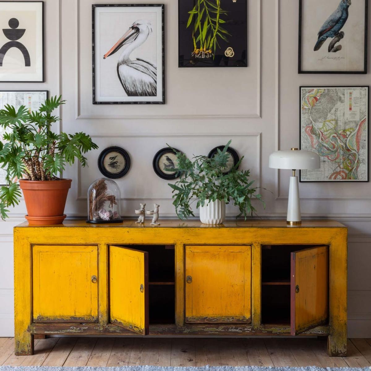 Graham and Green Lingbao Mustard Four Door Sideboard
