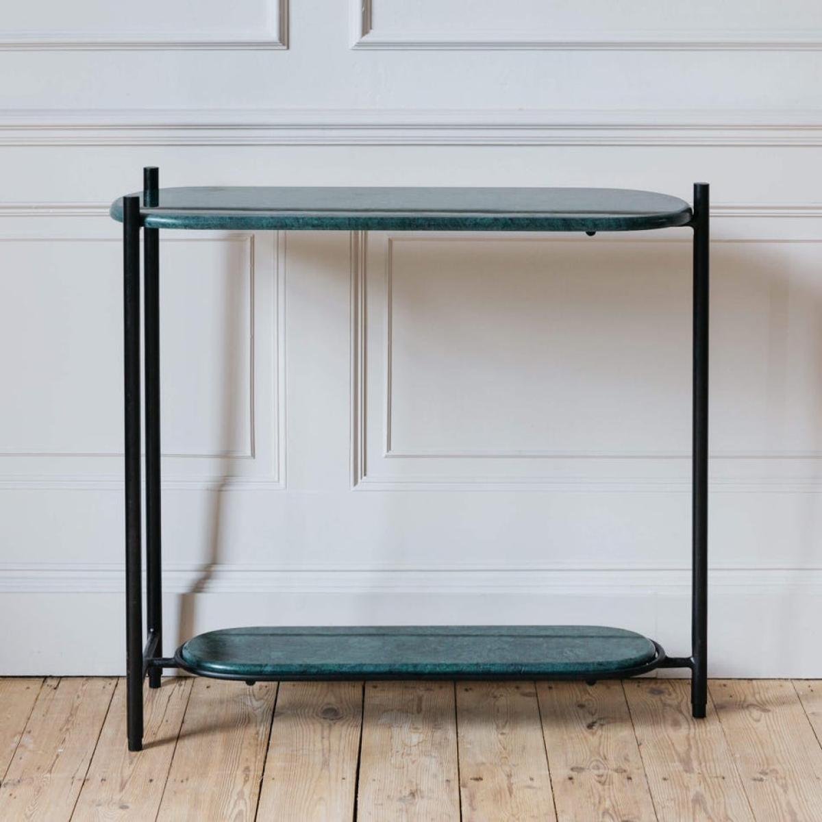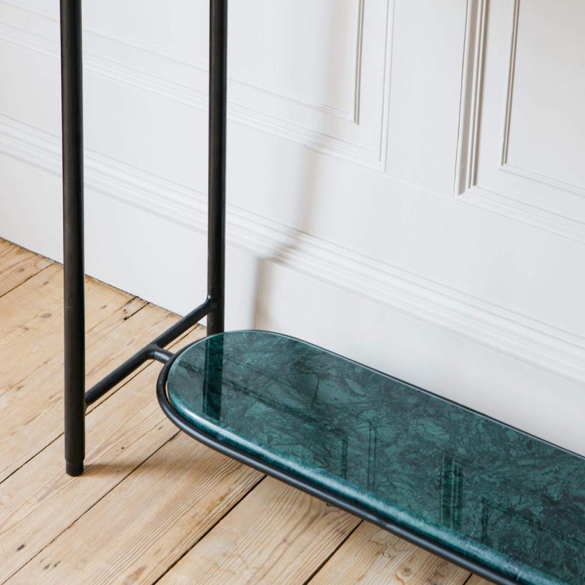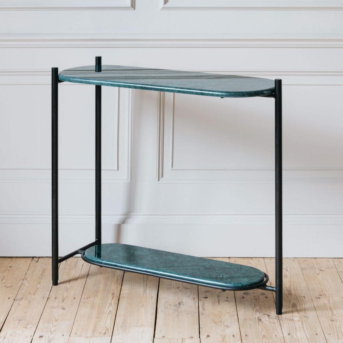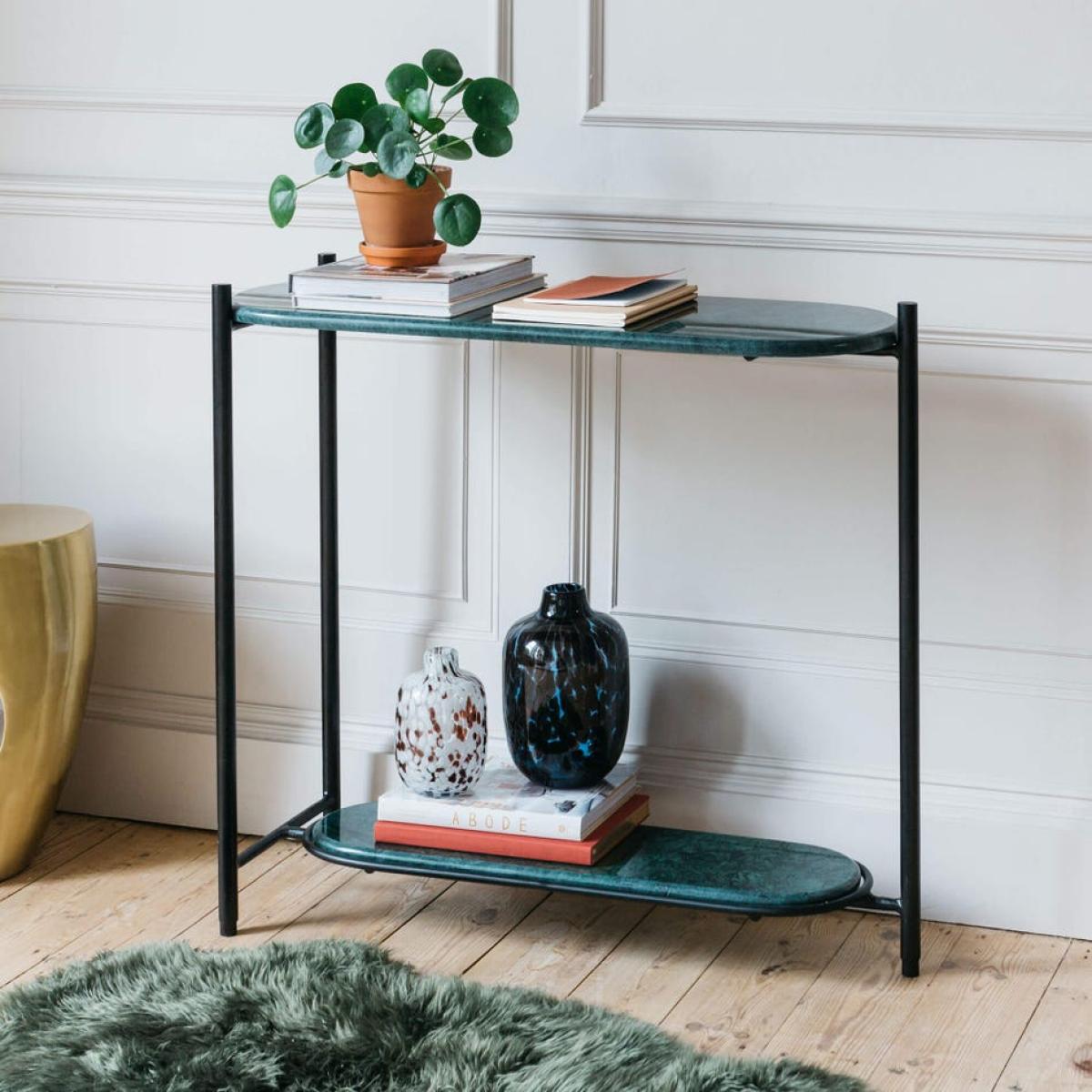 For your hallway, the Luca Console Table features luxurious white marble in an oval shape atop a black iron frame. Minimalist with a touch of decadence. H84 x W92 x D33cm. Made of brass-plated iron and marble. To avoid watermarks and heat damage, do not place items such as ceramics, tableware or glassware directly onto the surface of any of our furniture without the protection of a heat resistant mat, coaster and/or trivet as this could mark the surface. To clean, we recommend using products that are specific for stone top care. Avoid the use of products containing alcohol, lemon, vinegar or other acidic solutions that may damage the top and alter the overall look. This product is made from natural materials so the size, colour, and finish will vary and will contain beautifully preserved mottling, veining, and natural variation.