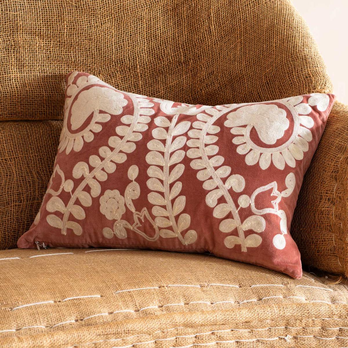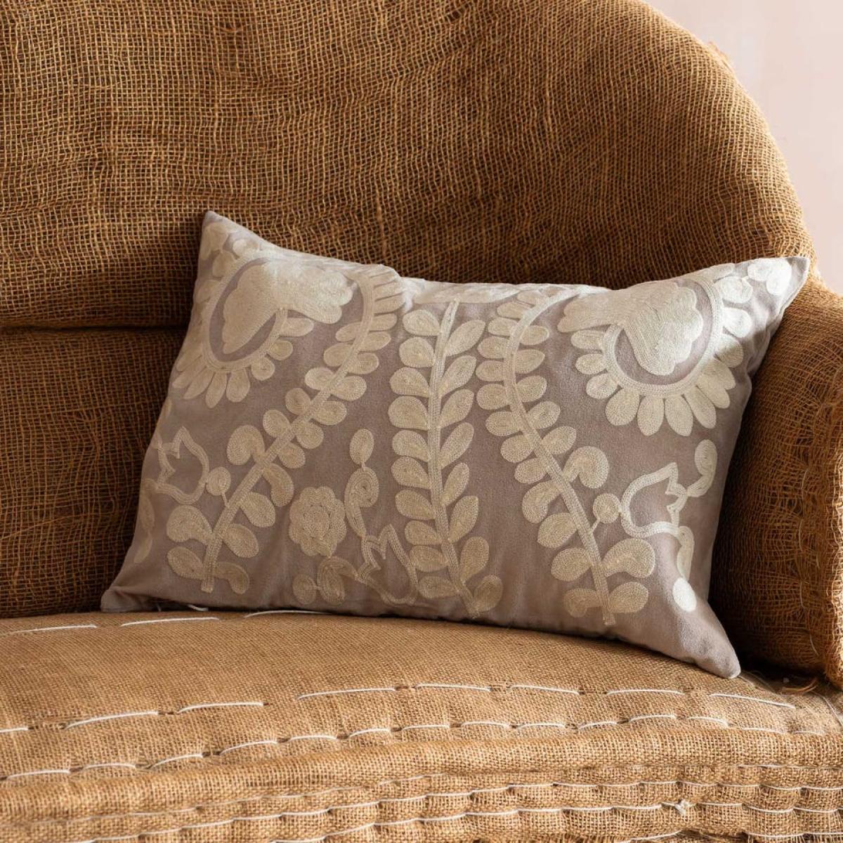 Beautifully embroidered with the Lucia leaf design, these rectangular velvet cushions are perfect for adding an elegant touch to a sofa, armchair or bed. Each cushion is hand-crafted from sumptuously soft, pastel-toned velvet and filled with a plump feather inner for luxurious comfort.