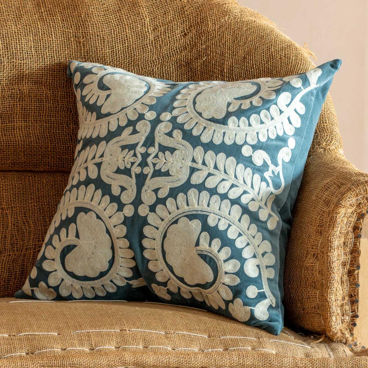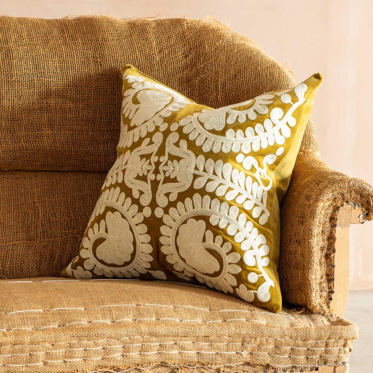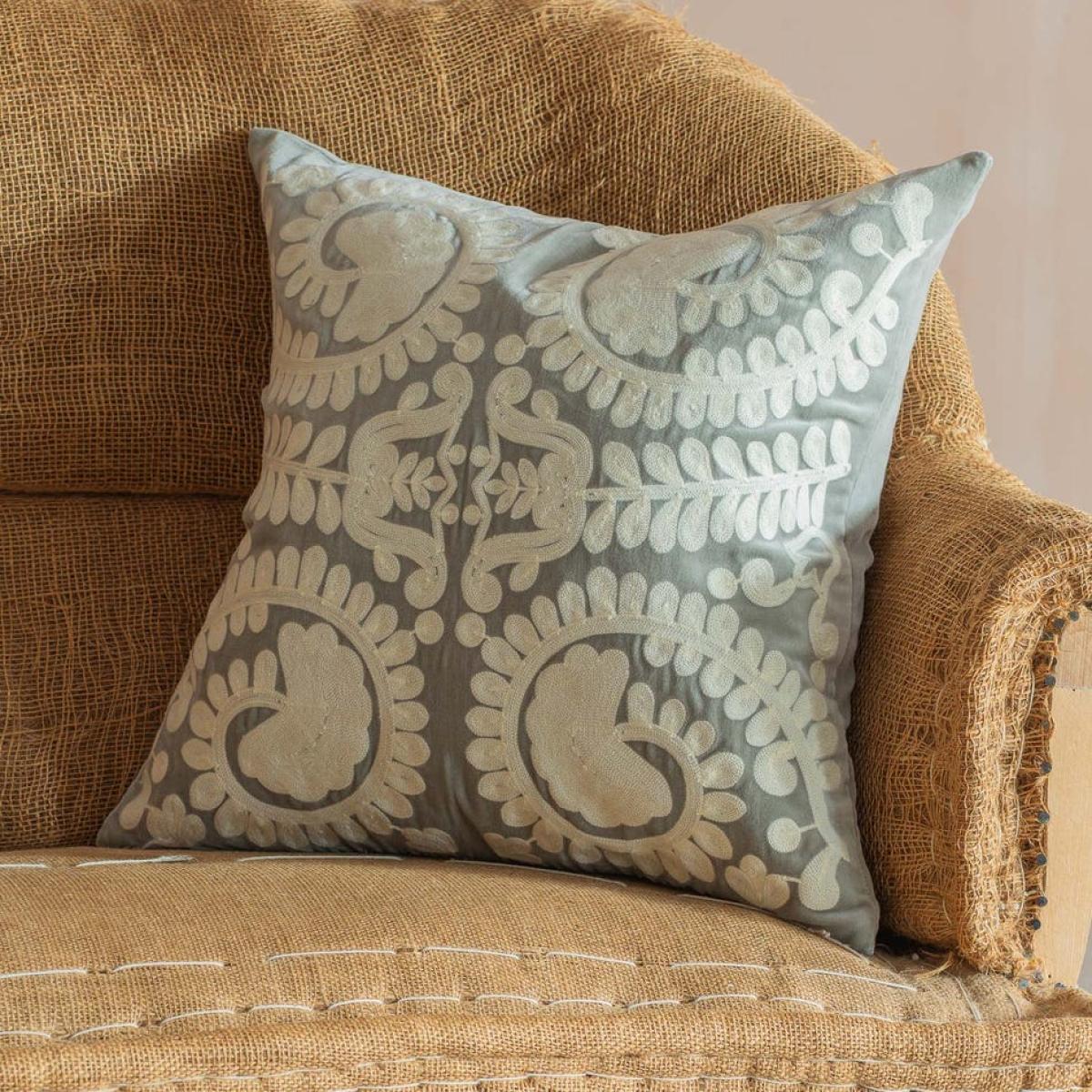 Beautifully embroidered with the Lucia leaf design, these square velvet cushions are perfect for adding an elegant touch to a sofa, armchair or bed. Each cushion is hand-crafted from sumptuously soft, pastel-toned velvet and filled with a plump feather inner for luxurious comfort.