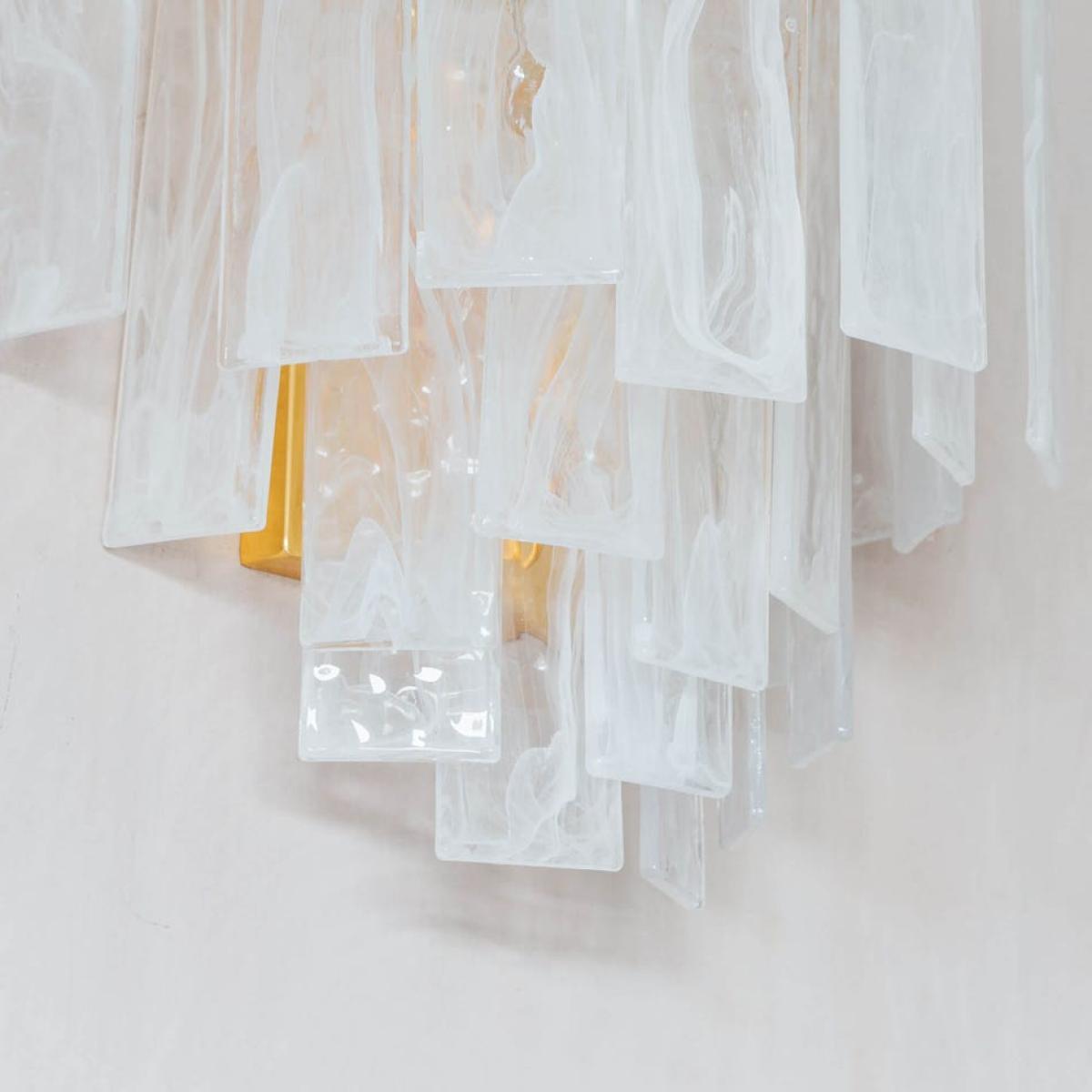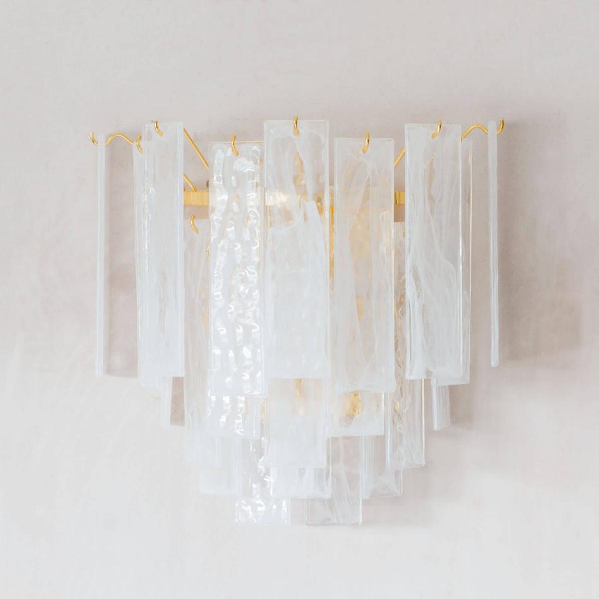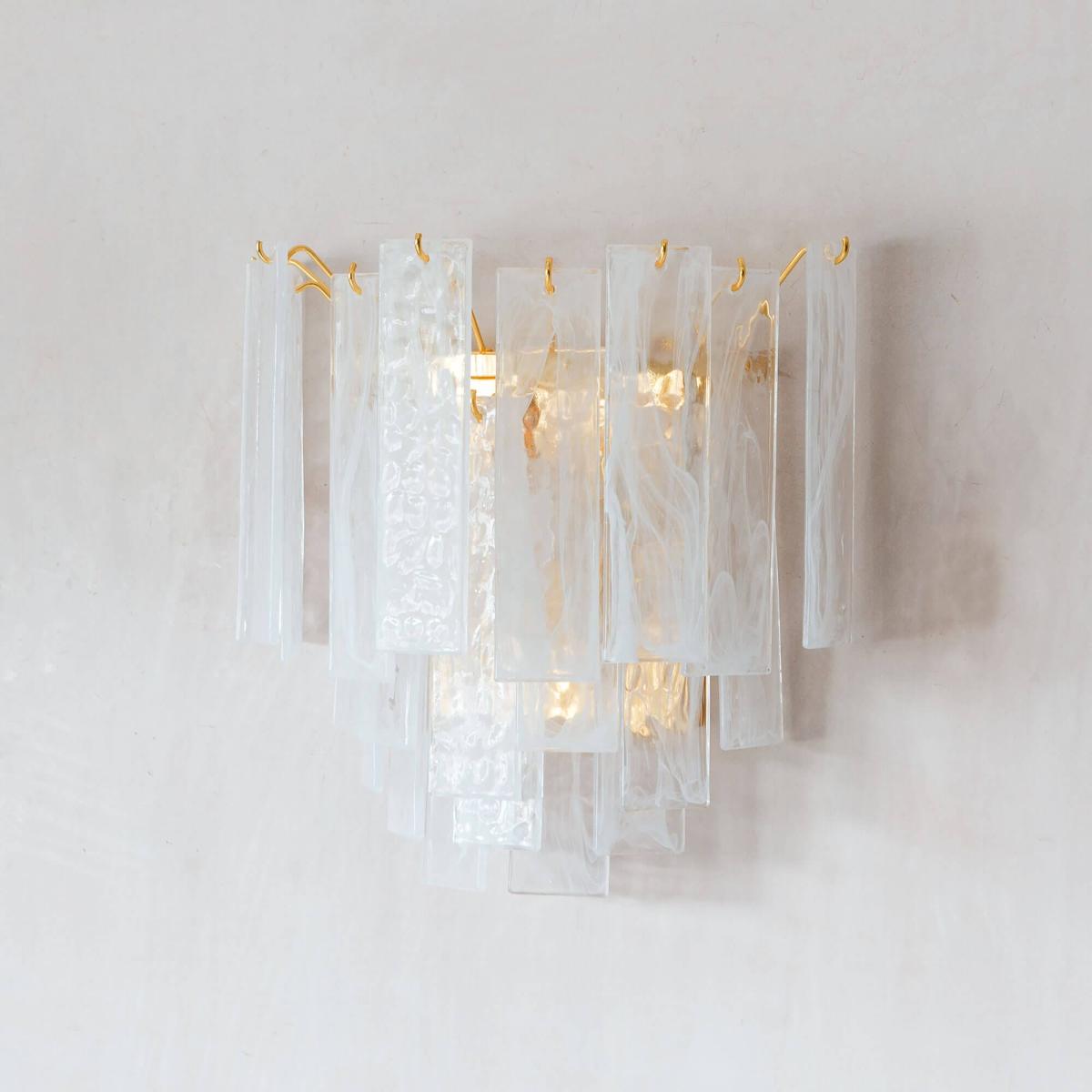 A shimmering wall light with panels of hanging glass in a painterly marbled finish that will create an artistic splash across your home.