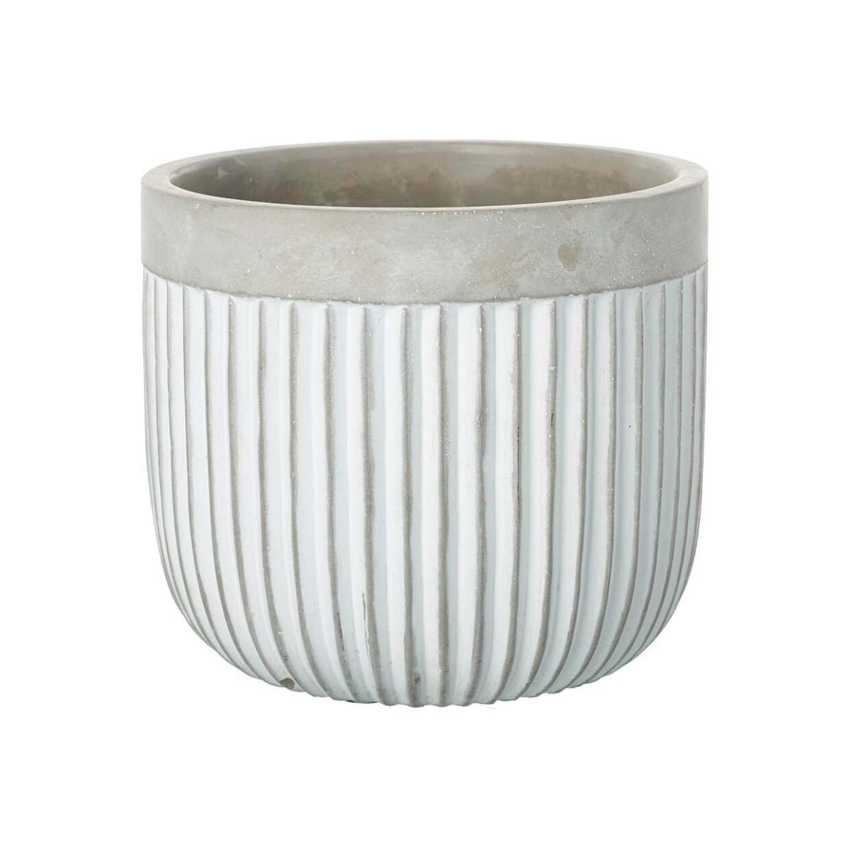 A ribbed geometric design wraps around this medium-sized cement planter to compliment your growing plant collection and a minimalist home interior. H15 x Diameter 17cm. Made of cement. This product is made from natural materials so the exact colour and finish will vary. Not suitable for outdoor use.