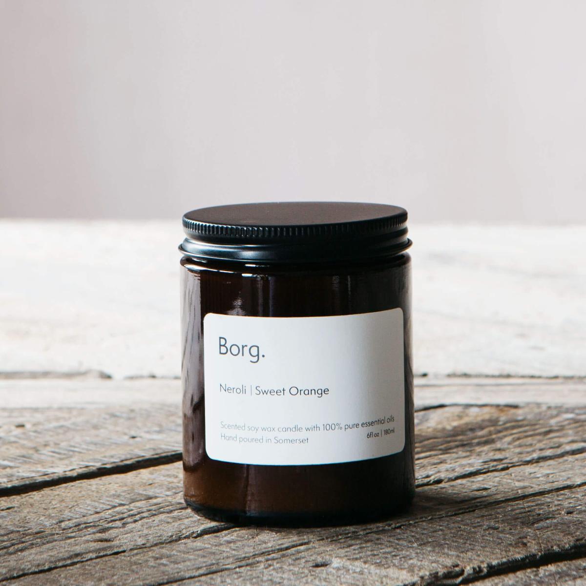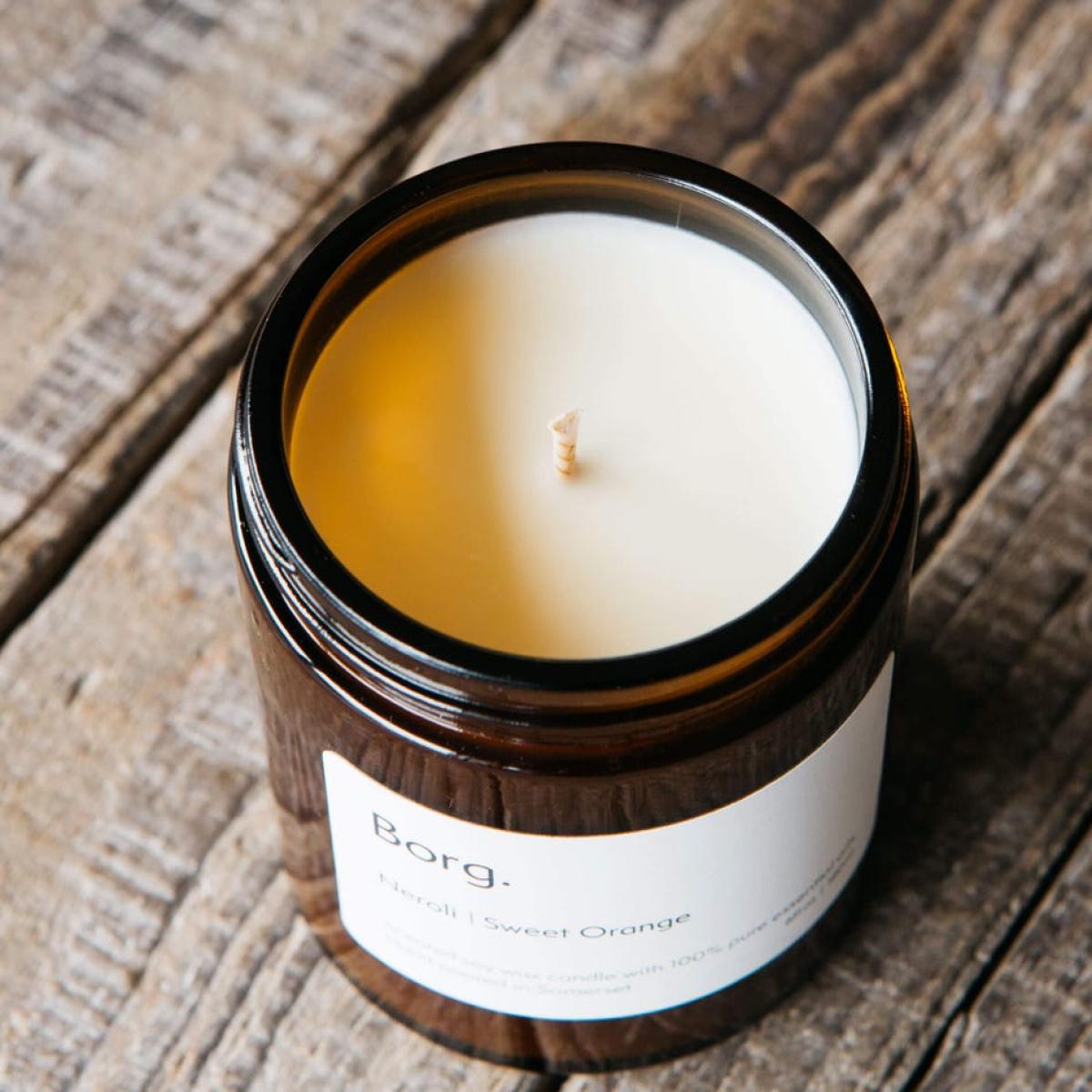 Hand-poured in Somerset by Borg Candles, each of these minimalist amber-glass candles is made from sustainable soy wax wrapped around a pure cotton wick. Fill your home with the delicious scents of honeyed neroli blossom and a burst of sweet orange to brighten your mood.