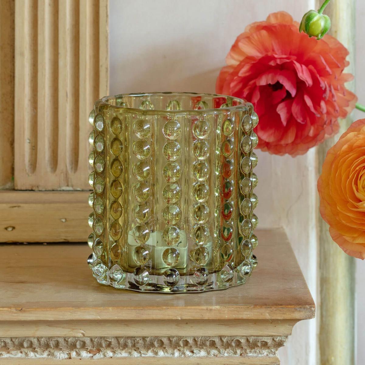 Ignite a cosy ambiance with these tealight holder. With a bubbled texture and candy-coloured glass, you will be able to create a warm glow whilst adding a splash of colour to a mantle or table setting.