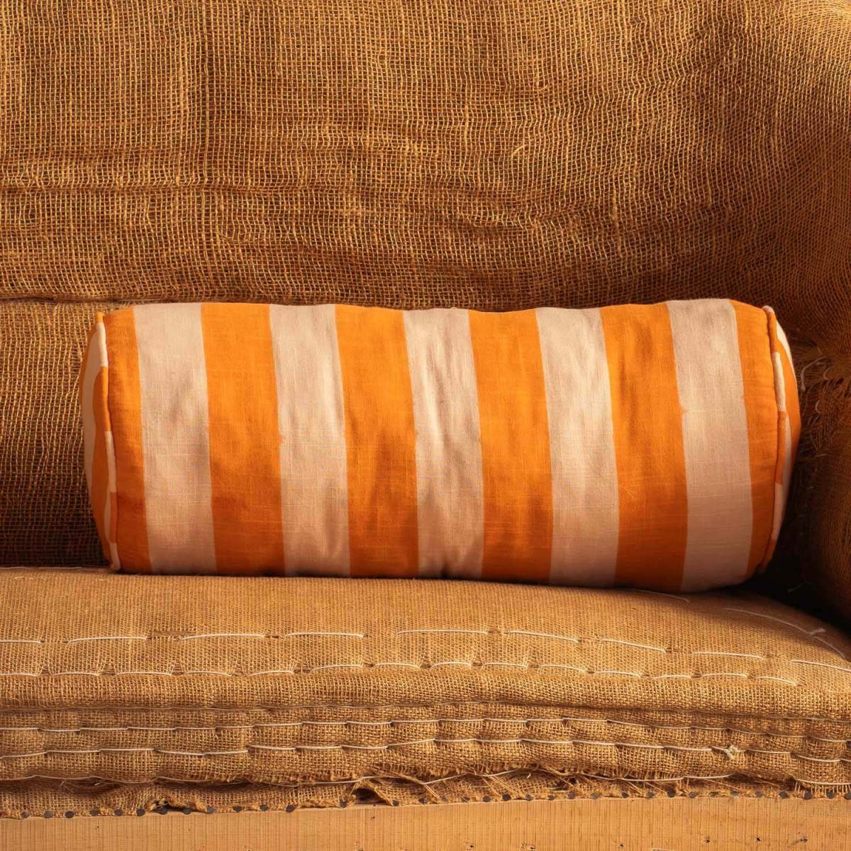 Graham and Green Orange Candy Stripe Bolster Cushion