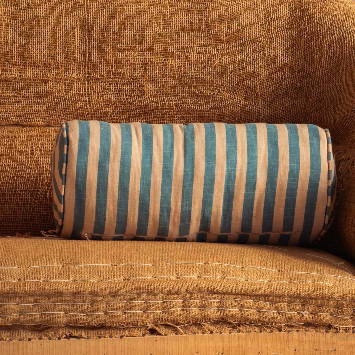 I love this cushion for its bold, playful stripe pattern and vibrant colour palette, which instantly injects a sense of fun into any space. It works particularly well in relaxed, eclectic interiors or paired with neutral furnishings to add a pop of colour and personality. The bolster shape makes it ideal for layering on sofas or beds, offering both style and comfort. Practical styling tips include mixing it with more subdued cushions for a balanced look or using it as a statement piece on a simple armchair to highlight its graphic design. Its lively stripes are perfect for creating a lively, welcoming vibe in living rooms or casual lounges.