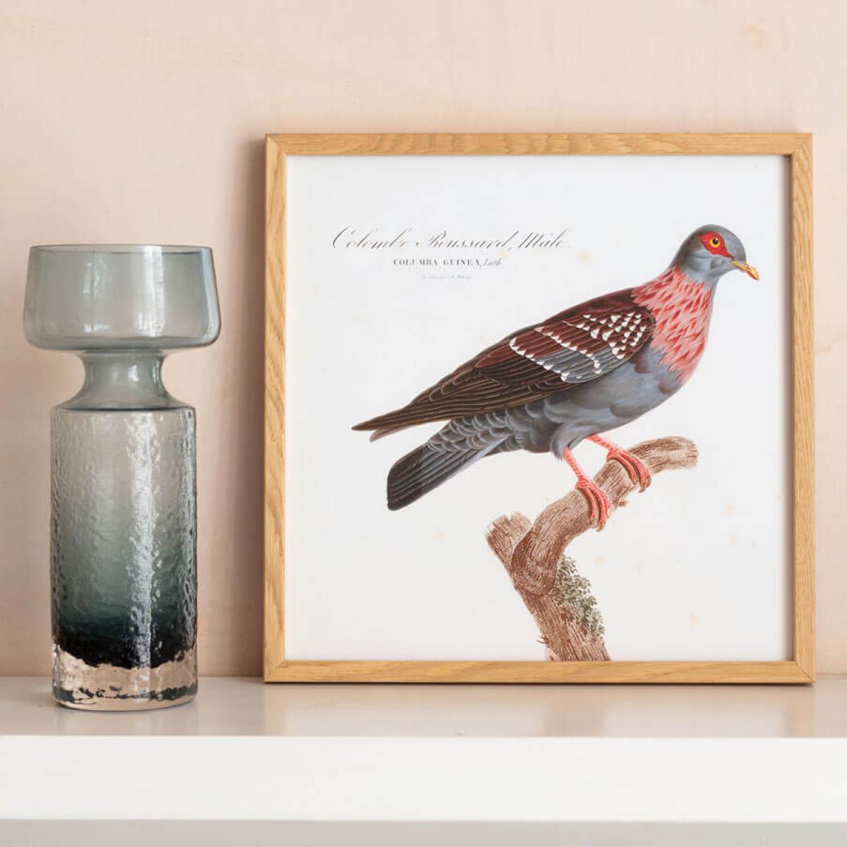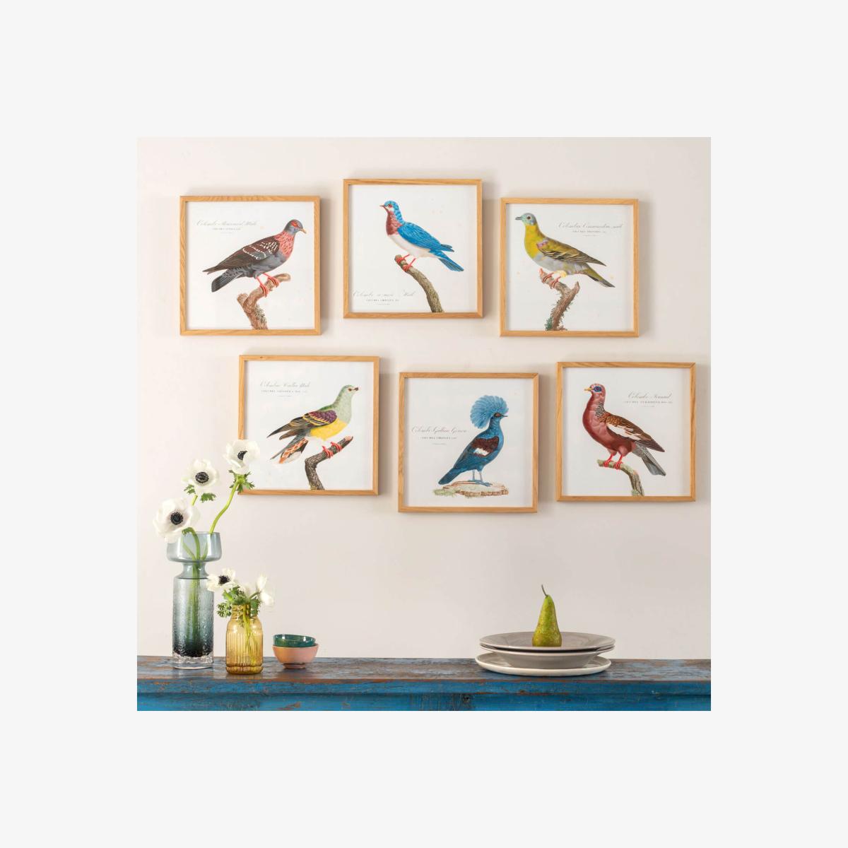 A collection of vintage-style prints taken from a 19th century illustrated book called 'Les Pigeons' by French artist Pauline Knip. Each bird has been printed onto high-grade paper with archival-quality inks and finished with a solid oak frame. H30 x W30cm. Printed onto high-grade paper with archival-quality inks. Set in a solid oak frame.