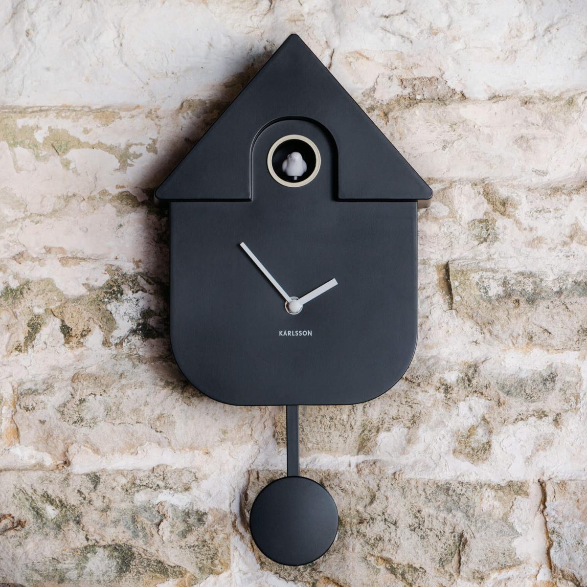 The traditional cuckoo clock gets a sleek modern update with these pendulum wall clocks that features a little bird that pops out on the hour. This clever clock is programmed to be silent at night so you're not kept up while the bird keeps watch. Black (PBF1002) Green (PBF1003) Olive Green (PBF1004) White (PBF1005) Red (PCM1000) H41 x W21. 5 x D8. 5cm. The clock is silent between 22: 00 and 06: 00. Bird features a small chirping noise. Requires 3 x AA batteries (not included). Made of plastic.